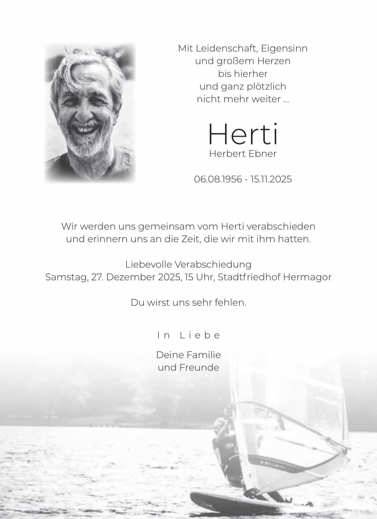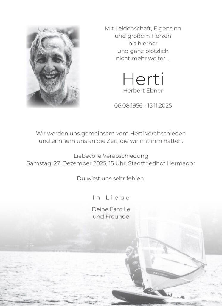 Zu den wichtigsten Menschen in Hertis Leben gehörten seine beiden Söhne Stefan († 2015) und Manuel, die ihm stets besonders am Herzen lagen. Große Freude bereiteten ihm auch seine beiden Enkelkinder, auf die er besonders stolz war. Herbert ” Herti” war jemand, der Menschen zusammenbrachte. Er liebte Begegnungen, ehrliche Worte, Musik, gutes Essen und das unkomplizierte Miteinander. Wer ihn kannte, weiß: Er war ein Original. Sein plötzlicher Abschied trifft Familie, Freunde, Wegbegleiter und Stammgäste tief. Doch all jene, die ihn begleitet haben, tragen seine Geschichten und seine Lebensfreude weiter.