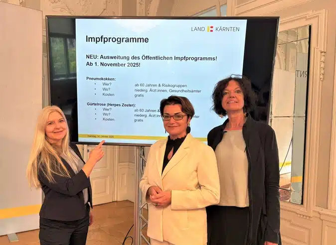 Ab November 2025 wird das Öffentliche Impfprogramm ausgeweitet. „Neu und ebenfalls kostenlos sind dann Impfungen gegen Pneumokokken – sie können z. B. bakterielle Lungenentzündungen mit oft schwerem Verlauf verursachen – und gegen Gürtelrose. Diese Impfungen stehen dann allen Personen ab 60 Jahren sowie jüngeren Risikogruppen kostenlos zur Verfügung“, begrüßt Prettner die Ausweitung.