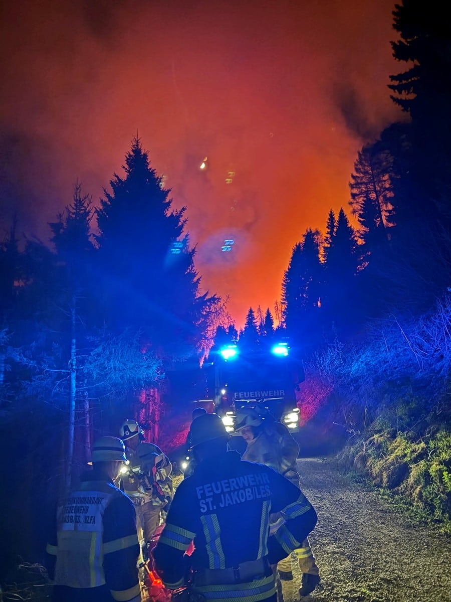 Um Mitternacht standen zwölf Feuerwehren aus dem Lesachtal, dem oberen Gailtal und aus Osttirol im Einsatz. Ab den Morgenstunden werden die Löscharbeiten von zwei Hubschraubern unterstützt.
