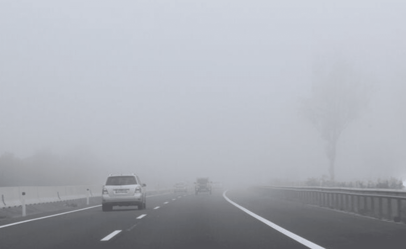 Tempo reduzieren: Bereits vor einer Nebelbank das Tempo verringern, um Blindflug und Auffahrunfälle zu vermeiden. Bei nassen Straßen verlängert sich der Bremsweg zusätzlich.