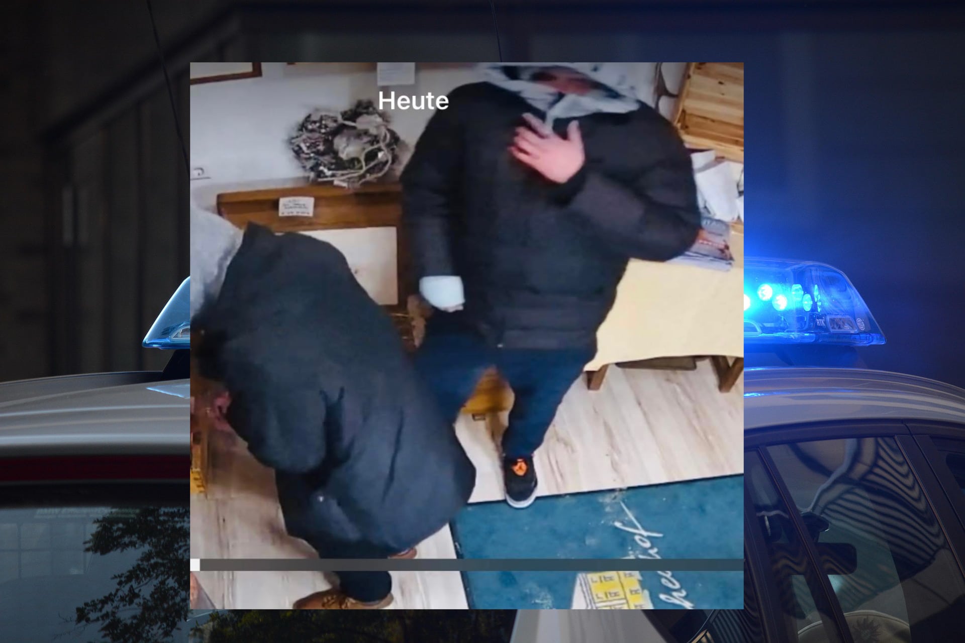 Auf Bild- und Videomaterial des Einbruchs sind zwei männliche Täter, vermutlich zwischen 18 und 25 Jahren zu erkennen. Die erste Person trug eine schwarze Parker-Jacke, braune Schuhe, blau karierte Socken, einen grauen Kapuzenpulli sowie eine Jogginghose. Die zweite Person war mit einer schwarzen Jacke, schwarzen Schuhen mit orangen Schnürsenkeln, einer Chino- oder Jogginghose und einem grauen Kapuzenpulli der Marke POOLMAN (vermutlich mit der Aufschrift „PLMDNM“) bekleidet. Ebenso konnte an der linken Hand, am Ringfinger, ein schwarzer Ring gesichtet werden, an der rechten Hand, am Zeigefinger, ein goldener oder silberner Ring. Beide dürften mit einem dunkeln unbekannten PKW unterwegs gewesen sein.