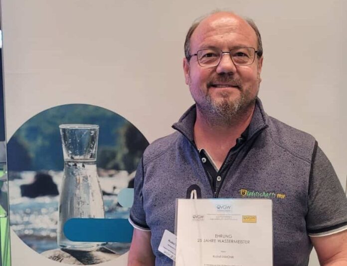 Für seine 25-jährige Tätigkeit als zertifizierter Wassermeister wurde ihm nun eine besondere Auszeichnung der Österreichischen Vereinigung für das Gas- und Wasserfach (ÖVGW) verliehen.