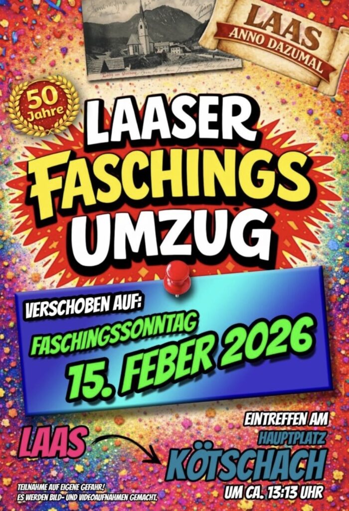 Seien Sie dabei, wenn es wieder heißt „Lei Laas!“, und feiern Sie gemeinsam mit uns ein paar kurzweilige und gesellige Stunden zum Höhepunkt des Faschings am Kötschacher Hauptplatz!