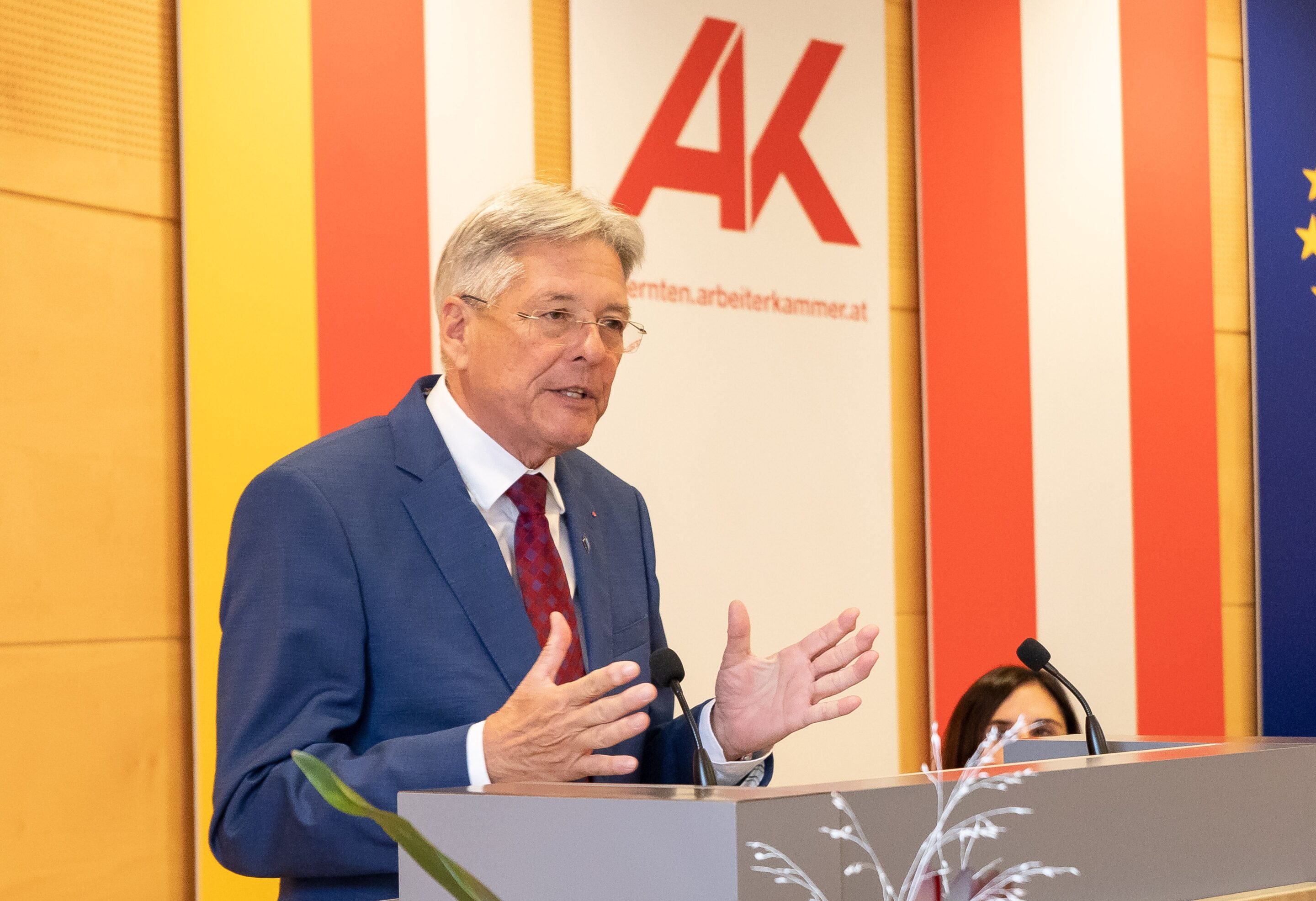 Landeshauptmann Peter Kaiser nahm Bezug auf die gestern präsentierte Konjunkturumfrage der Arbeiterkammer Kärnten und des Joanneum Research, die seiner Ansicht nach eine exakte Bestandaufnahme ist. Er forderte – trotz schwieriger Lage – mehr Optimismus: „Wir haben in der Vergangenheit viele Krisensituationen gemeinsam bewältigt, mussten da und dort den Gürtel enger schnallen, aber nicht, um damit Gewinne zu erhöhen, sondern um Raum zu schaffen für Innovation, Weiterentwicklung sowie bessere und sichere Arbeitsplätze.“