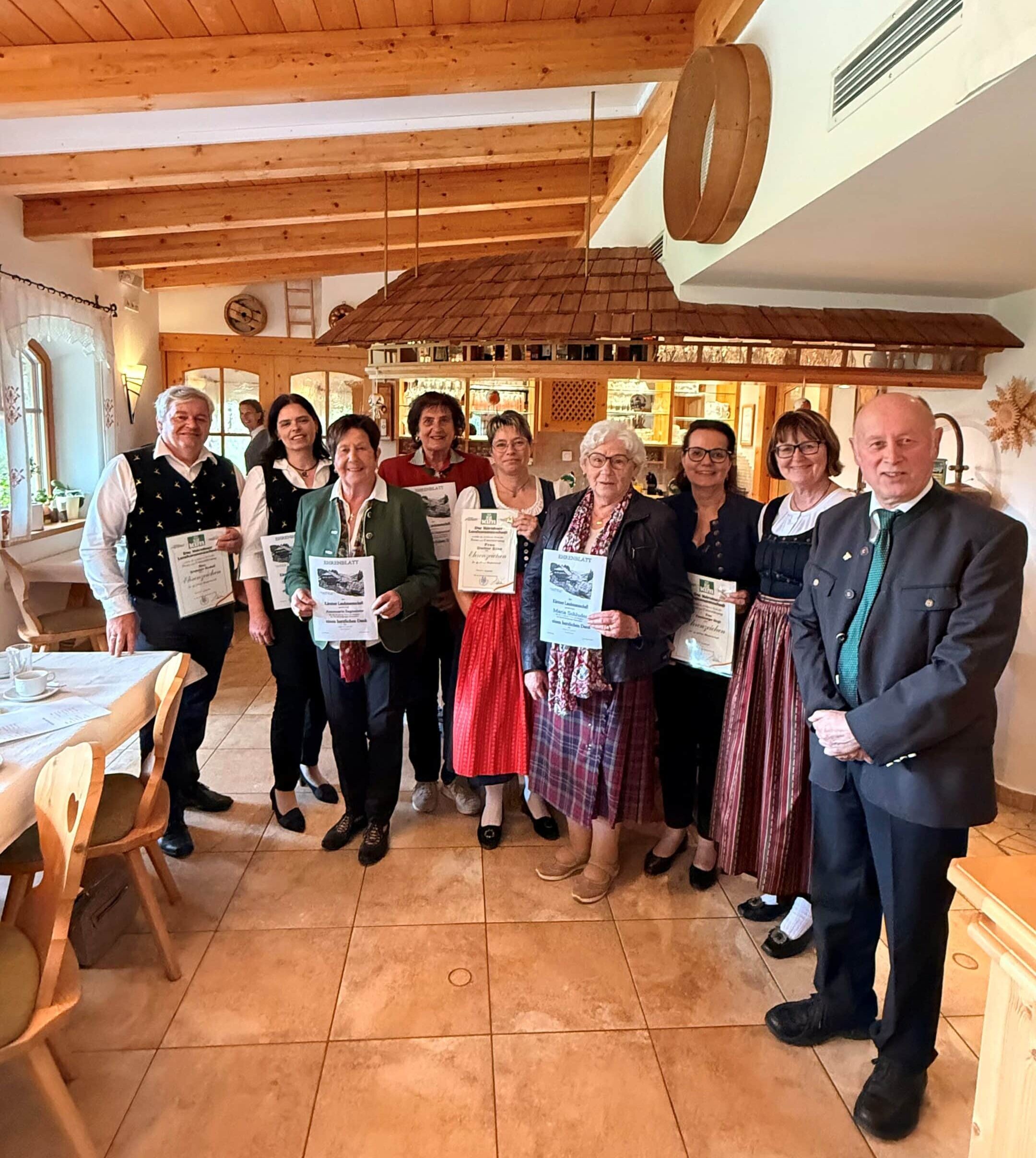 Den Geehrten wurde herzlich zu ihren Jubiläen gratuliert. Frau Waltraud Puntigam überbrachte in ihrer Funktion als Obfrau der ARGE KLM Gail-, Gitsch- und Lesachtal sowie als Stellvertreterin des Bezirksobmannes der Oberkärntner Landsmannschaft die besten Wünsche.