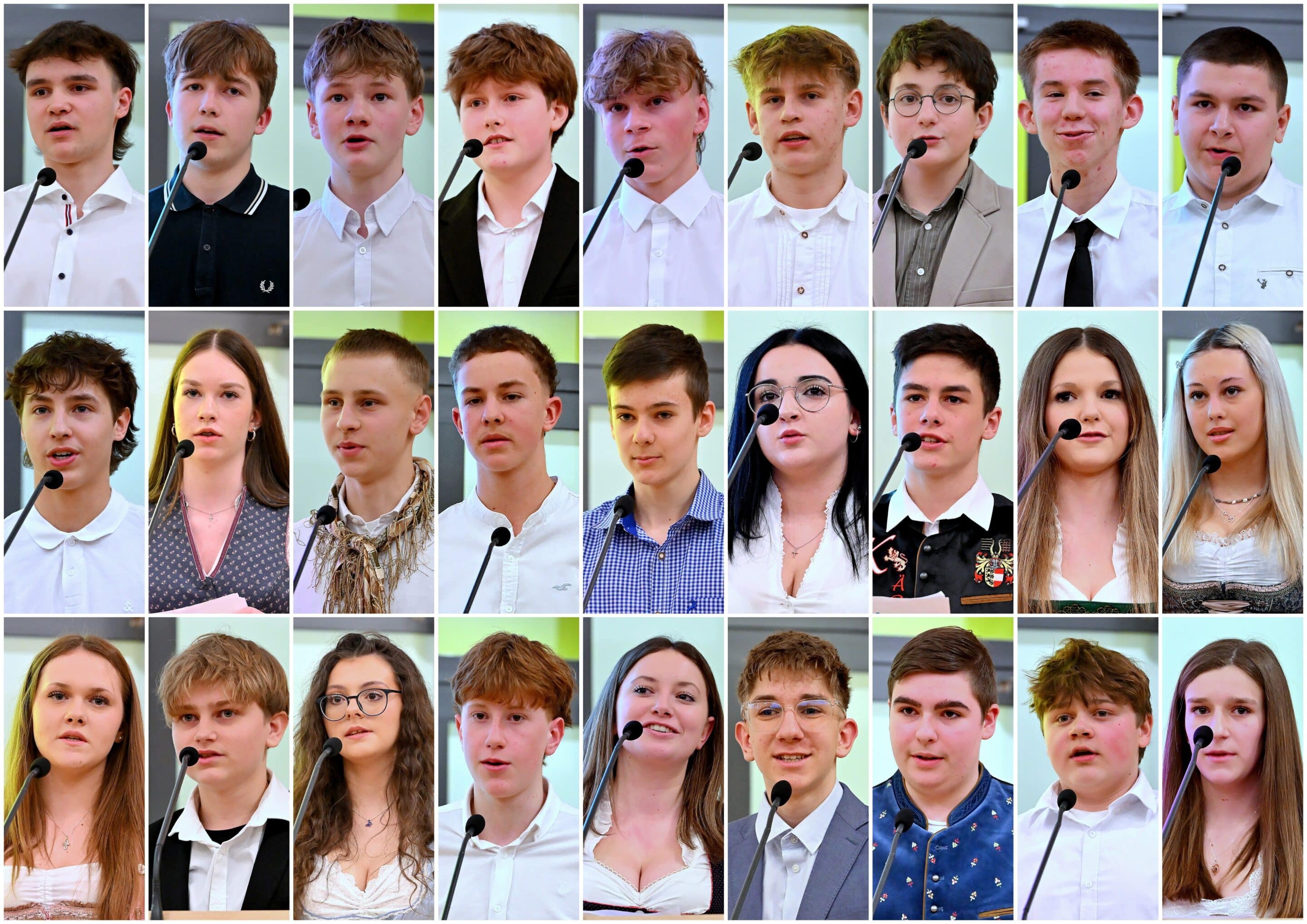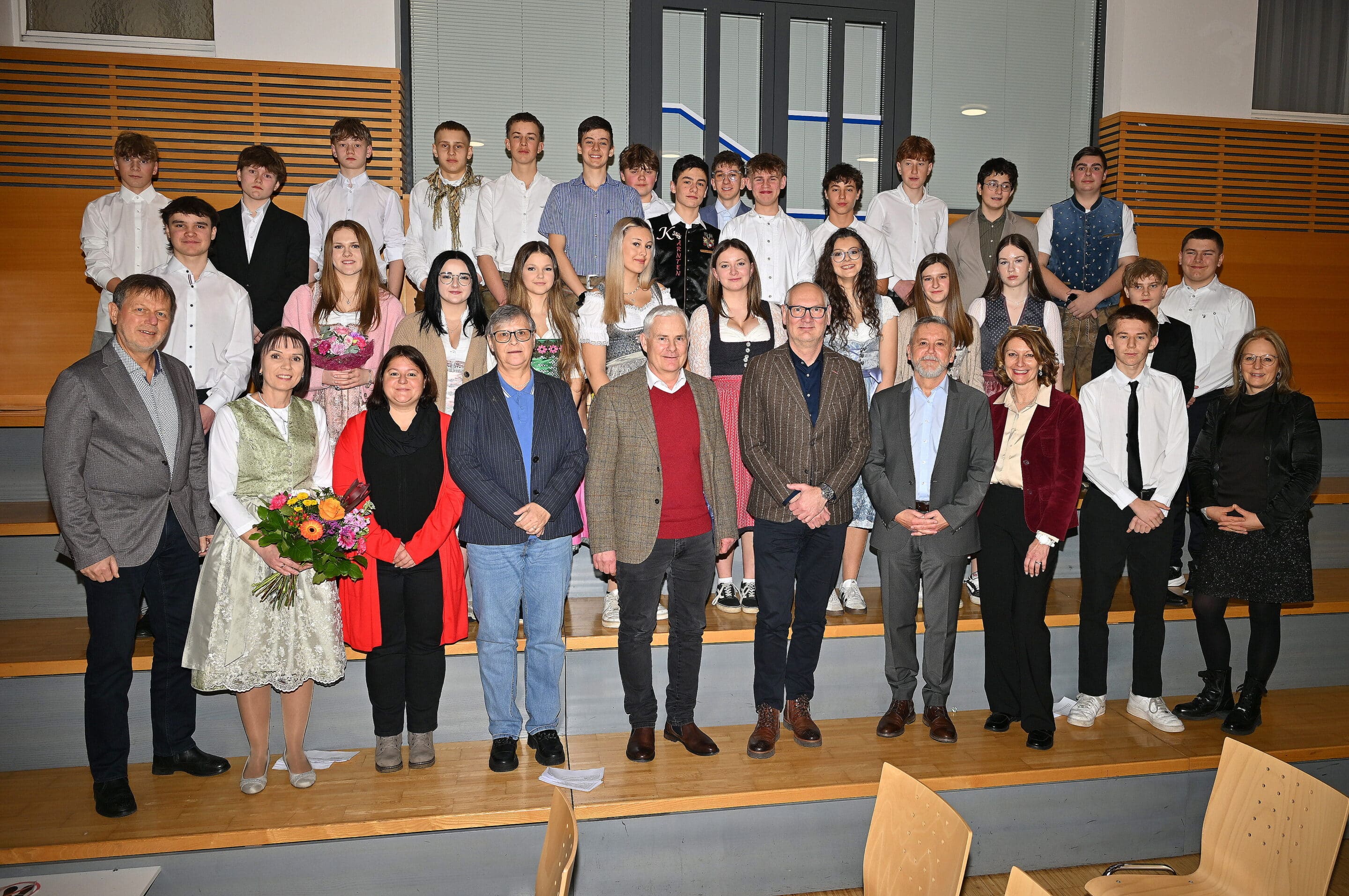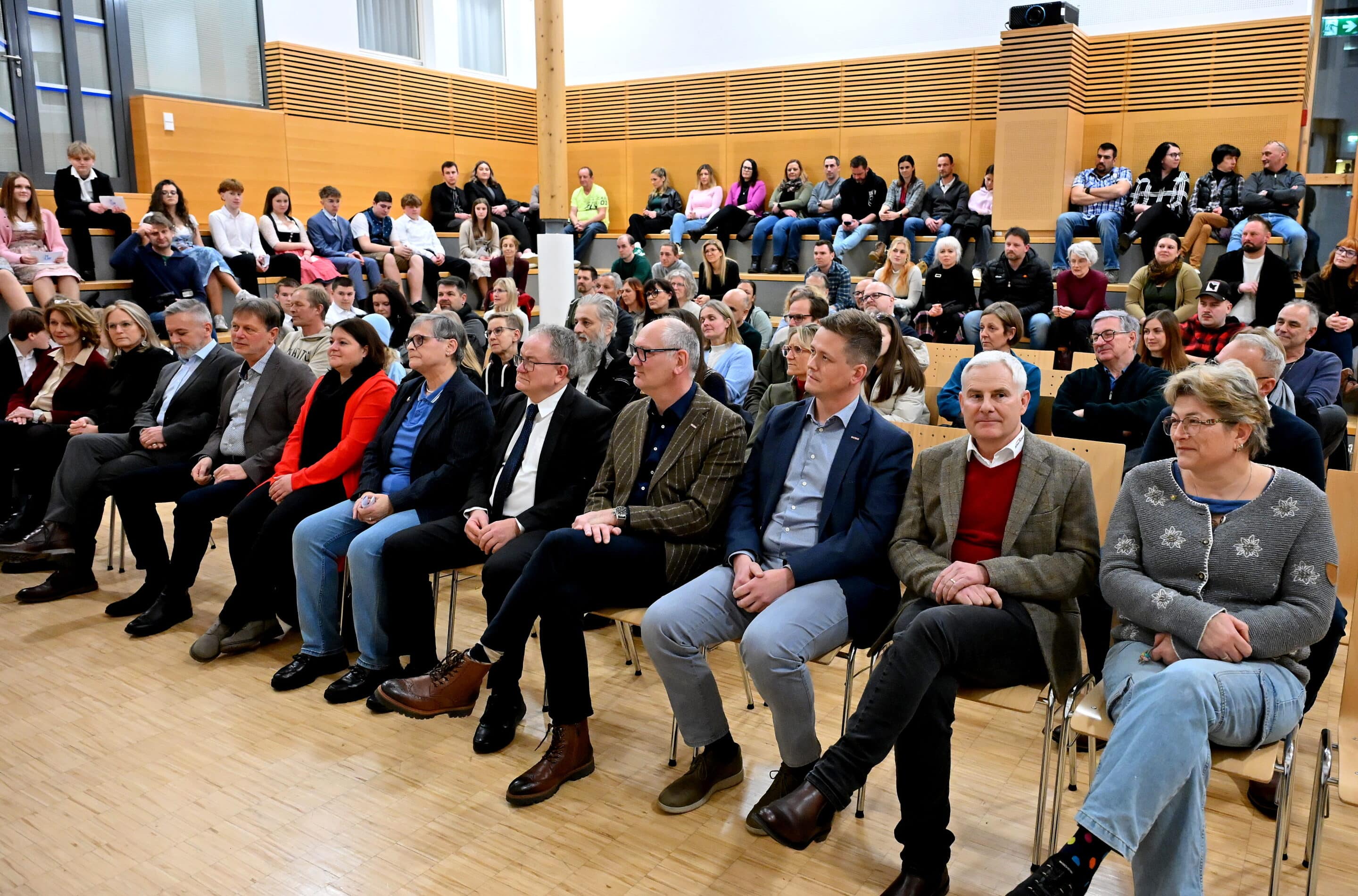 Im Zuge seiner Begrüßung zeigte sich Cluster-Leiter Mag.Dr. Andreas Schuller sehr erfreut über die rege Teilnahme und die Leistungen seiner engagierten Schuljugend, über die wertvolle Kooperation mit der regionalen Wirtschaft sowie über das große Publikums-Interesse. Cluster-Leiter i.R. Mag.Werner Wölbitsch erinnerte an die Anfänge der inzwischen so erfolgreichen Einjährigen Wirtschaftsfachschule im Jahre 2010, aber auch an die gemeinsame Bewältigung bildungspolitischer Herausforderungen vor drei Jahren. Persönliche Wertschätzung, verbunden mit Dankesworten an die Schüler:innen, an Eltern und Angehörige sowie an das Pädagogen-Team bekundeten mit ihrer Anwesenheit Vize-Bürgermeisterin Irmgard Hartlieb, Wirtschaftskammer-Obmann Hanns Stattmann sowie der Verein „Zukunft Handwerk und Industrie Gailtal“ (ZHIG) vertreten durch Firmenchef Ing. Franz Gerhard Patterer, AMS Hermagor Chef Franz Jost Motivierende Dankesworte auch seitens der HLW-Bereichsleiterin Mag. Sabrina Obersteiner.