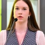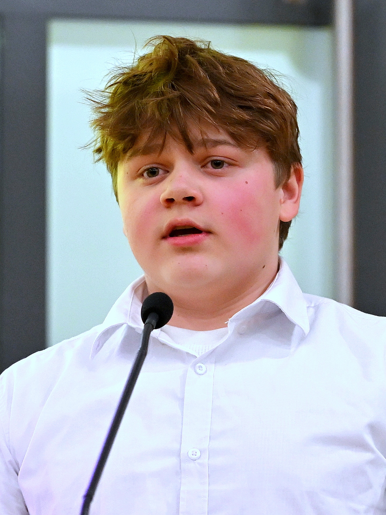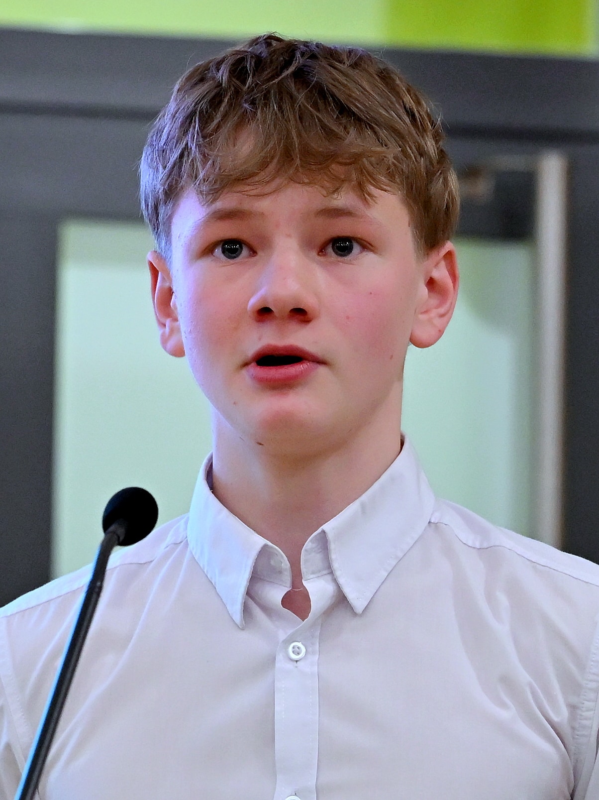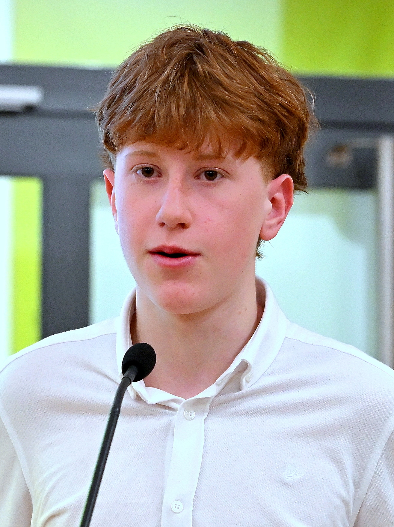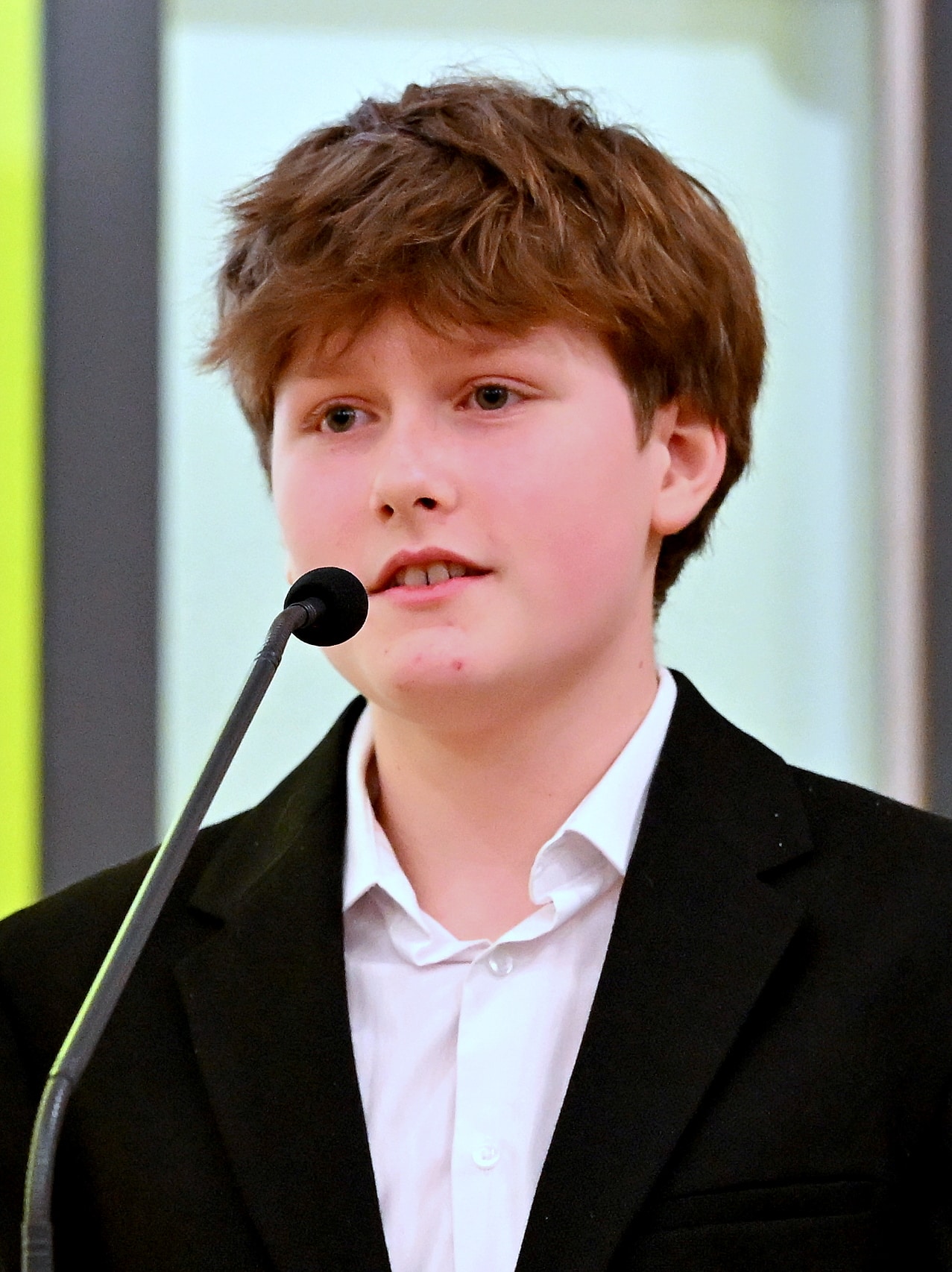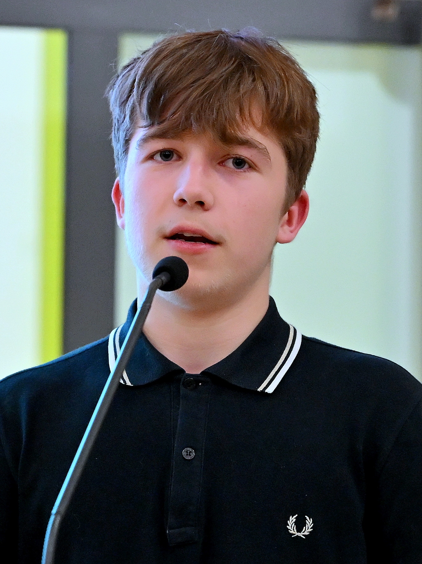 Die persönlichen Erzählungen der Schüler und Schülerinnen am Rednerpult wurden mit jeweils kreativ erstellten Powerpoint-Serien unterstützt und aufgelockert durch gesangliche Live-Sequenzen mit Gitarrenbegleitung durch die junge Gymnasiastin Nina Tschabuschnig (8a).