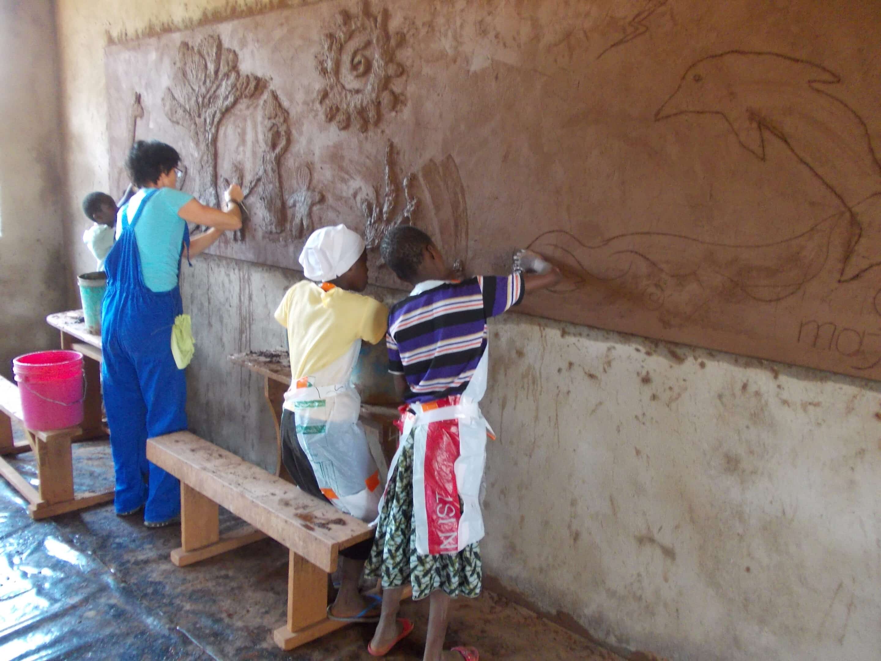 Große Unterstützung erhielt Brandmüller von Elisabeth Muffat, die mit ihrer Kreativität und ihrem Engagement das Erscheinungsbild vieler Projekte prägte. Sie gestaltete nicht nur den Innenraum des Kindergartens, sondern auch den Kreuzweg im angeschlossenen Kirchentrakt. Gemeinsam mit Schüler:innen entstand zudem ein Wandrelief im Multifunktionsraum. Muffat hält regelmäßig Workshops ab und ist für Brandmüller zu einer unverzichtbaren Mitstreiterin geworden.