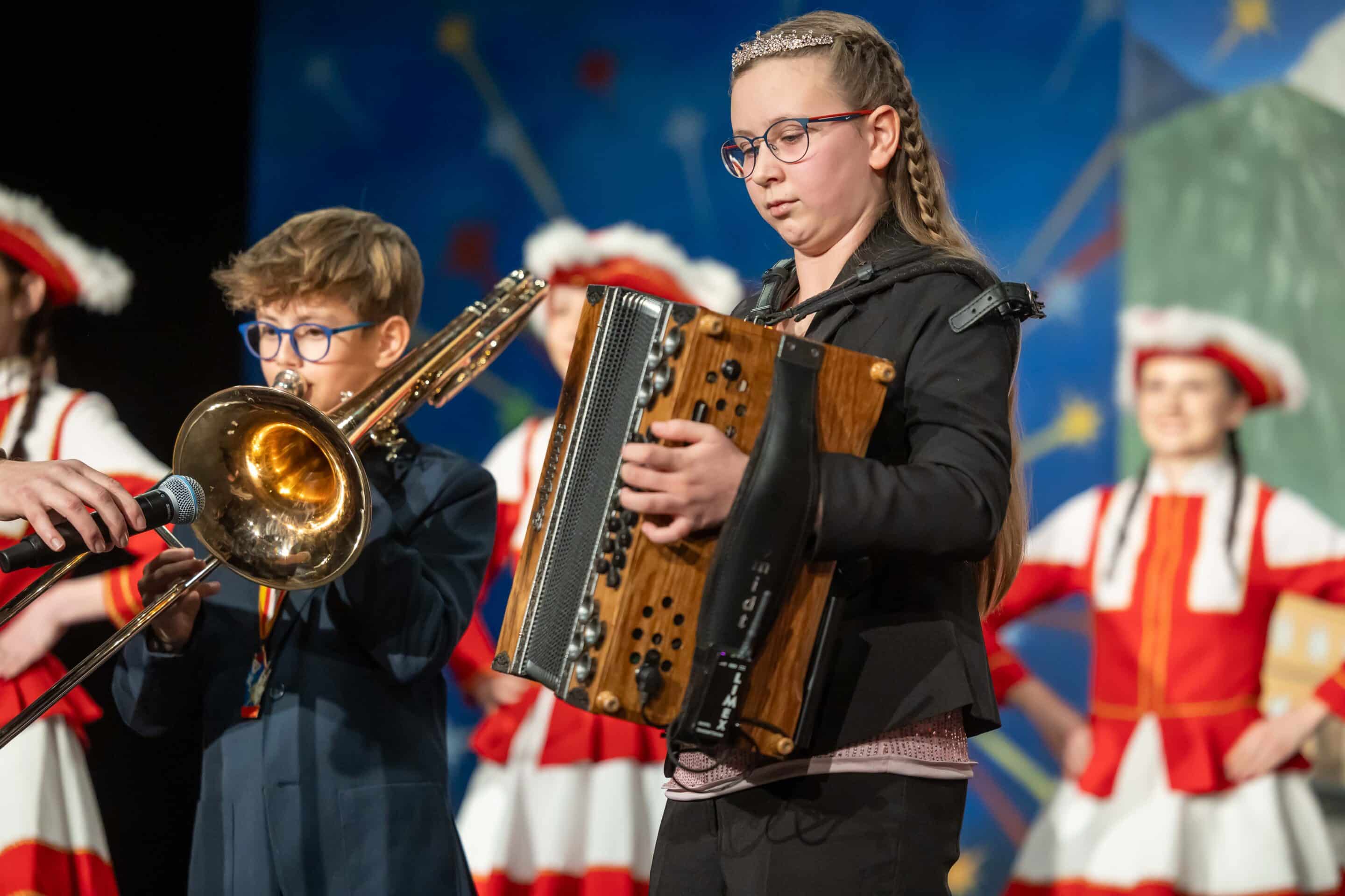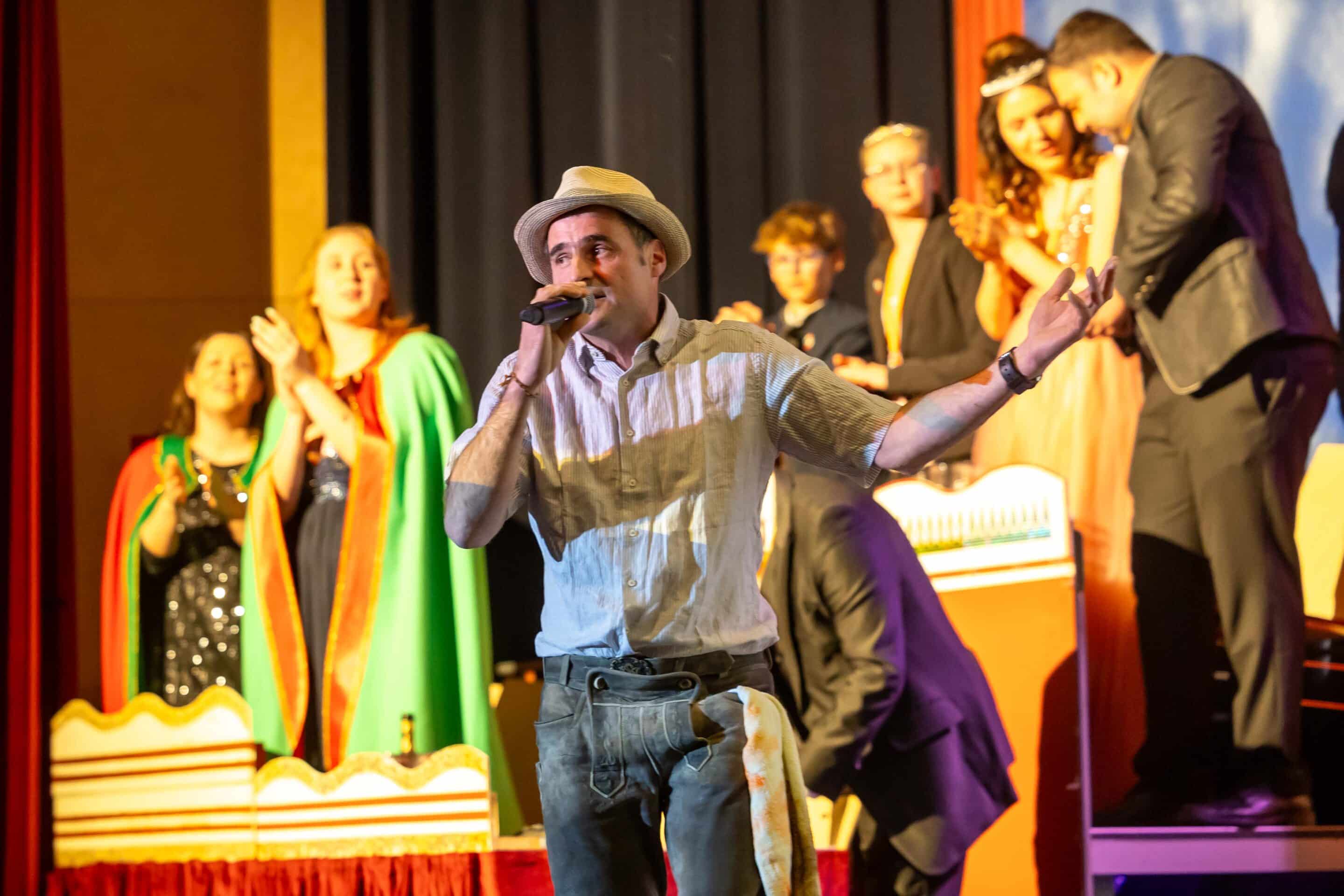 Musikalisch brillierte die Interpreten-AG mit Günther Schreibmajer am Klavier und an der Gitarre, gemeinsam mit Vera Eder und Katharina Bucar. Besungen wurden dabei nicht nur der Plöckentunnel und die Aquarena, sondern auch so manches Gemeindeproblem – treffsicher und zum Brüllen komisch.
