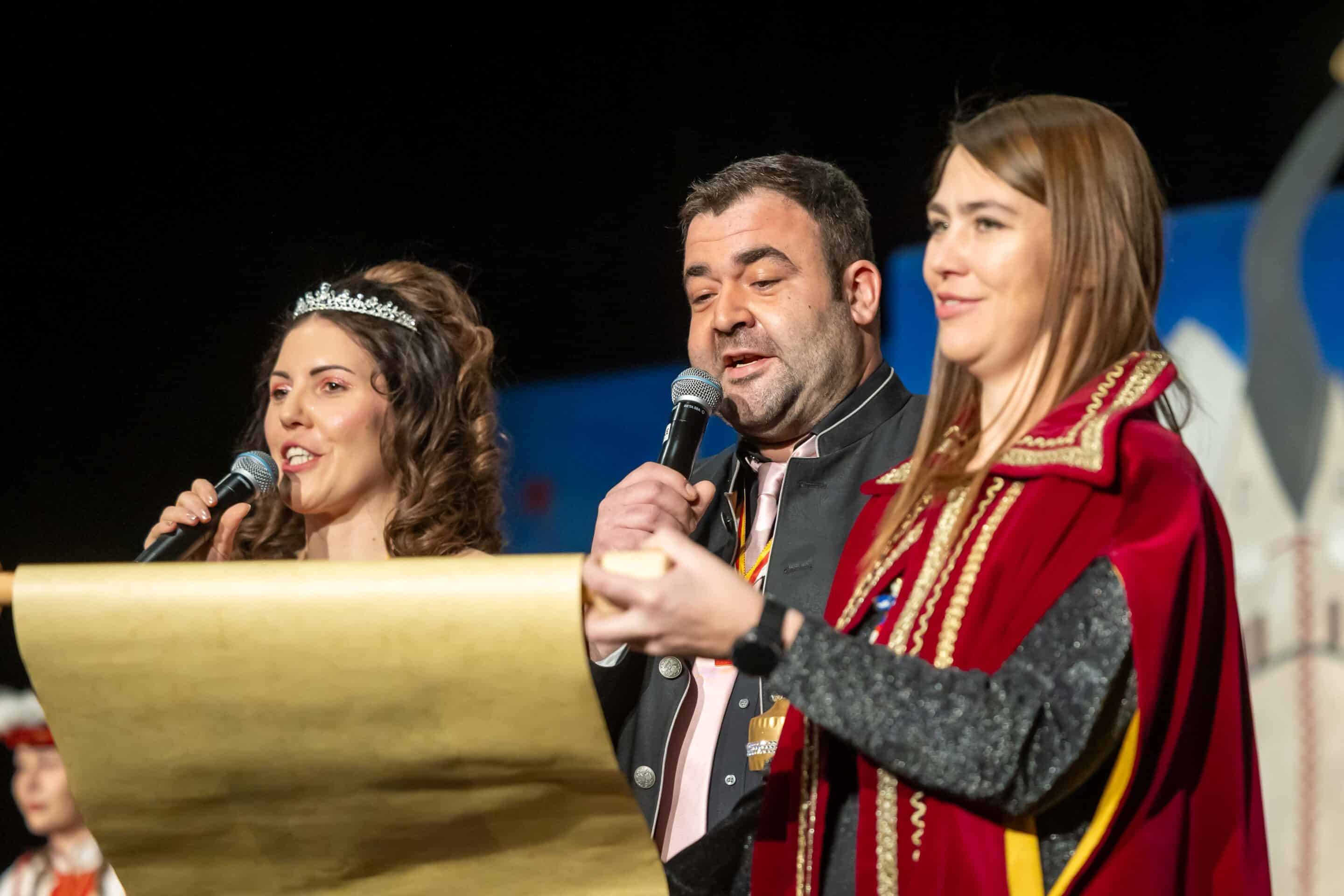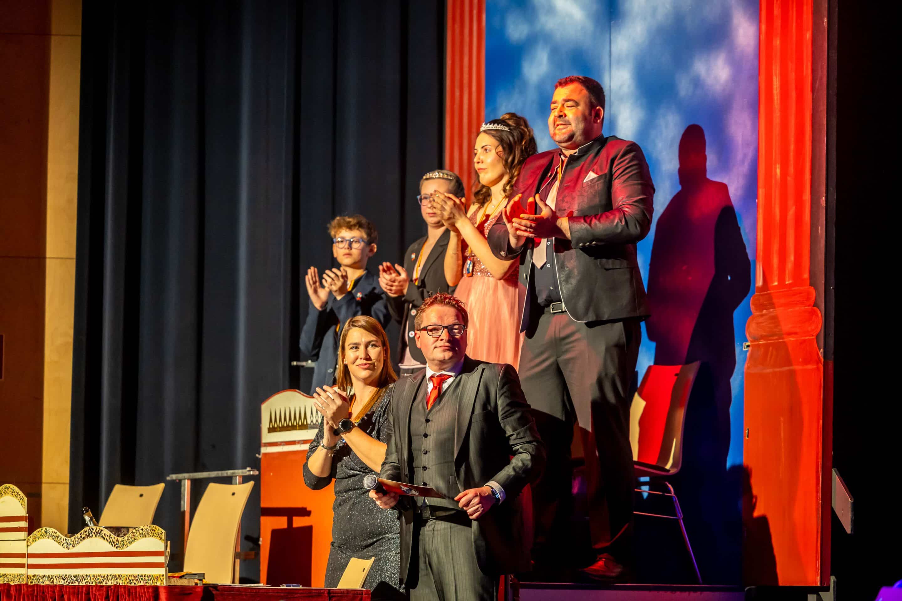 Schon der Auftakt mit der feierlichen Proklamation des Prinzenpaares und des Kinderprinzenpaares sorgte für beste Stimmung. Die Garde, choreografiert von Carline Salcher und Sabrina Haßler, tanzte sich schwungvoll in die Herzen des Publikums und setzte optische Glanzpunkte.