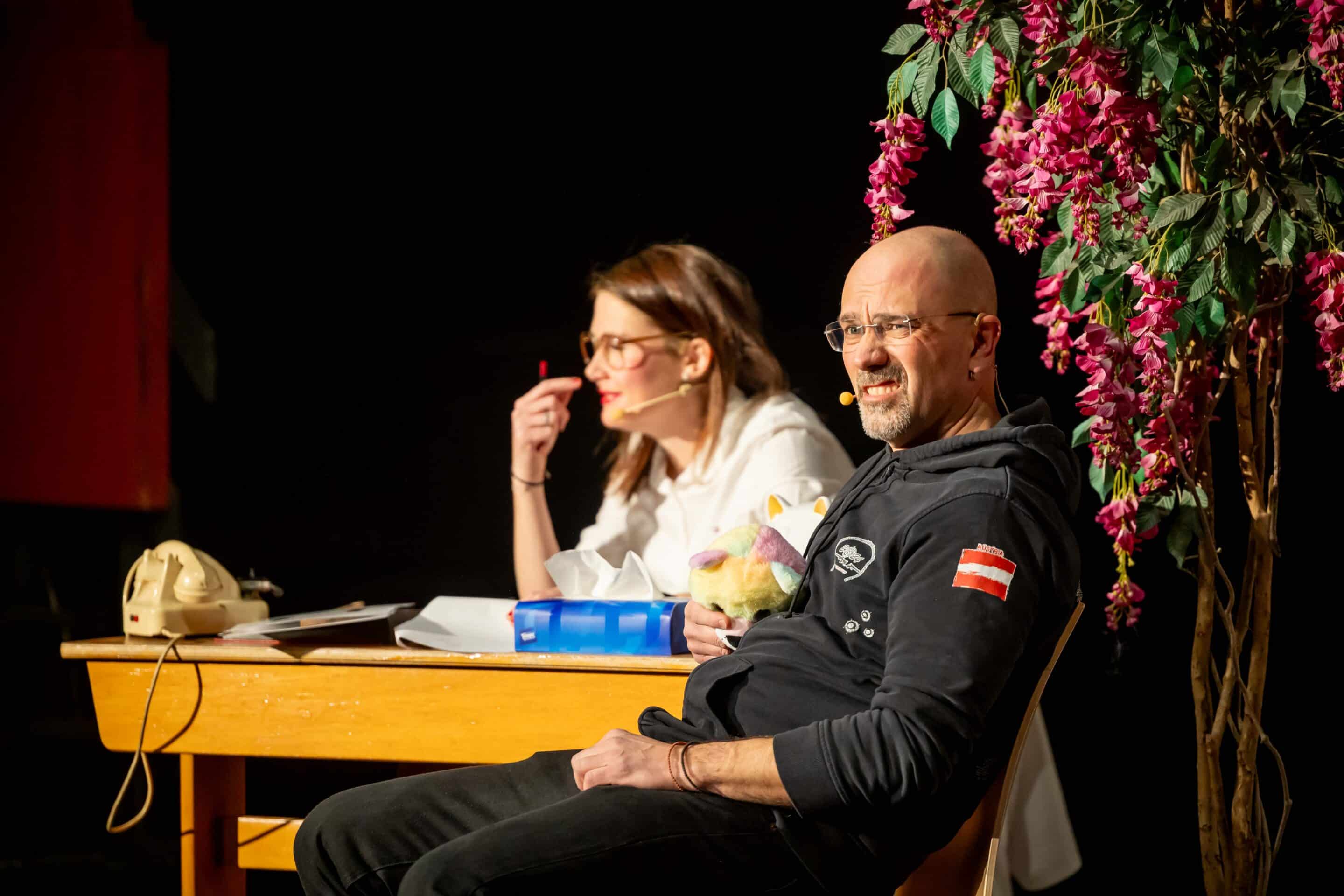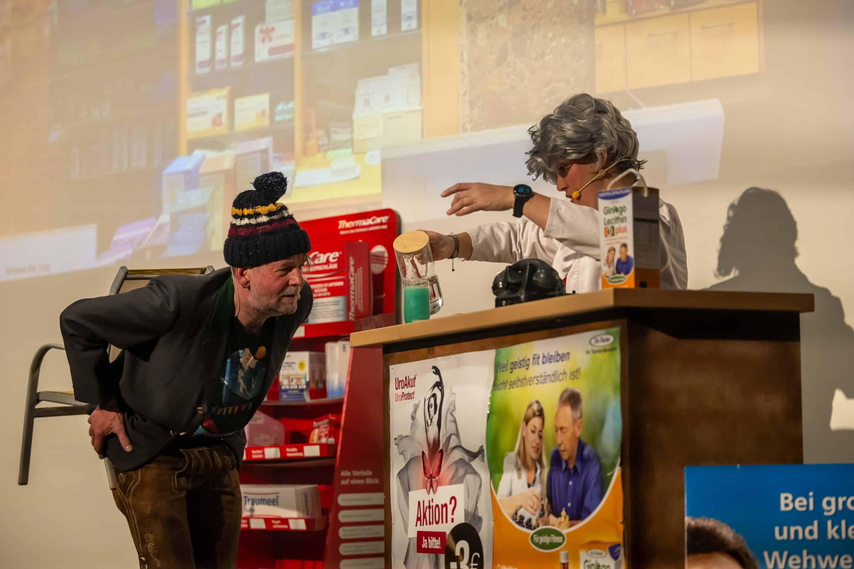 Schräg, schärfer, sensationell: „Gretls Wunderwelt der Wehwehchen“ mit Andreas Spivey – schwarze Kondome und Damenbinden für Witwen und die passenden „Zapferln“ für wirklich alle Lebenslagen sorgten für ungläubiges Gelächter.