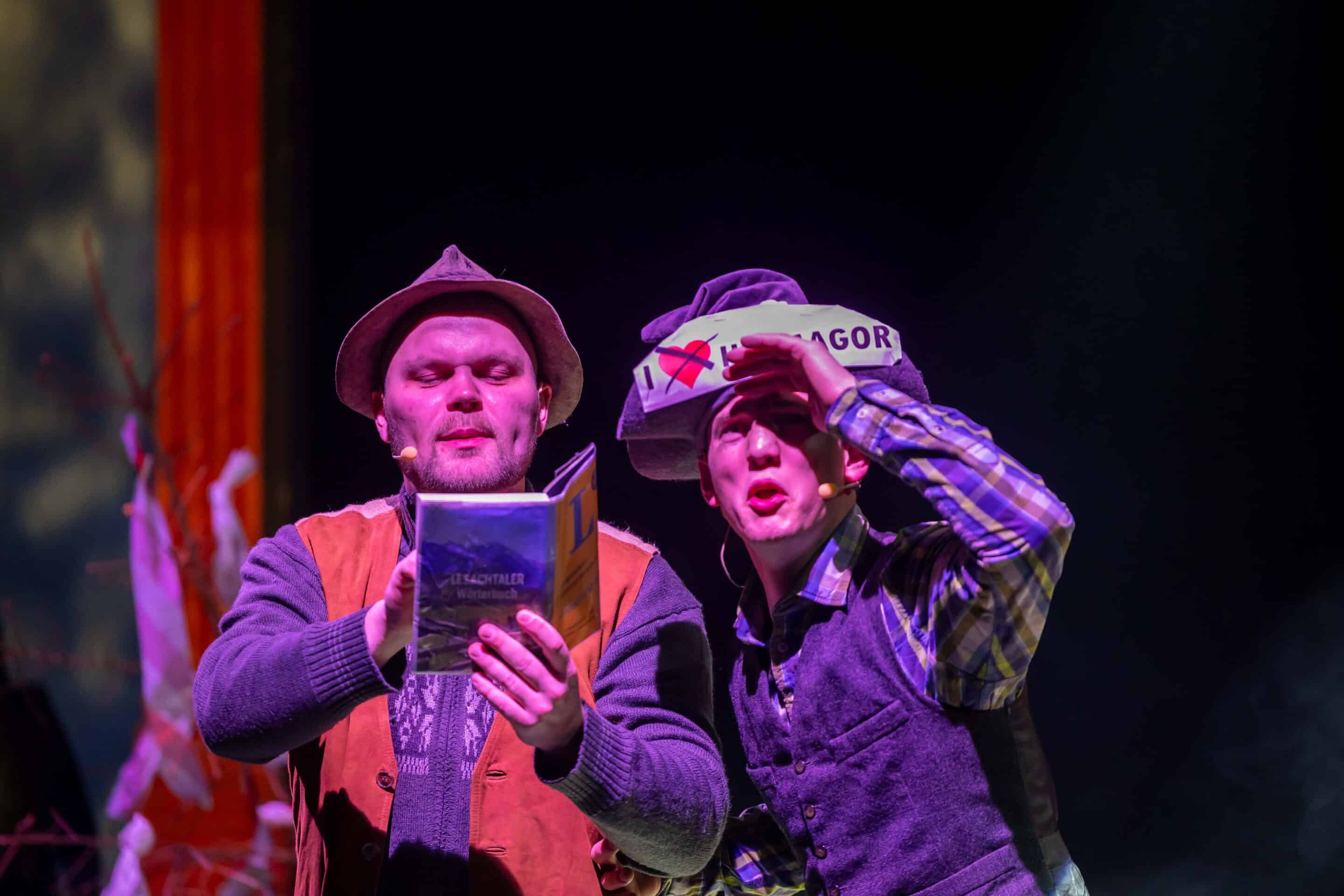 Musikalische Power lieferten Berg Power – die Lesachtaler Bergbauern-Buam Florian & Günther – sowie die Gesangseinlage „Trentschparterle“ mit Buzgi, HP Kreuzberger und Walter Zojer. Themen wie Plöckenpass, Rauchzeichen und Brieftauben-Kommunikation aus dem Lesachtal wurden mit viel Witz verarbeitet.