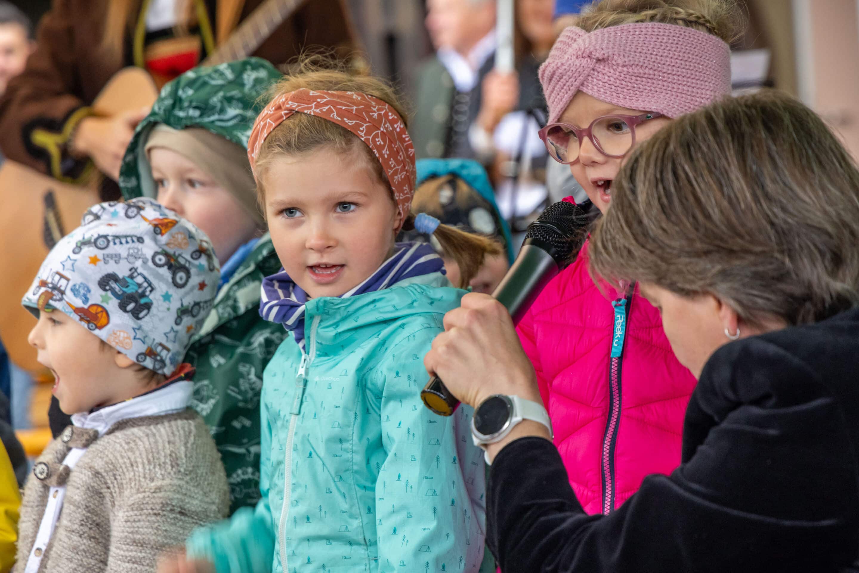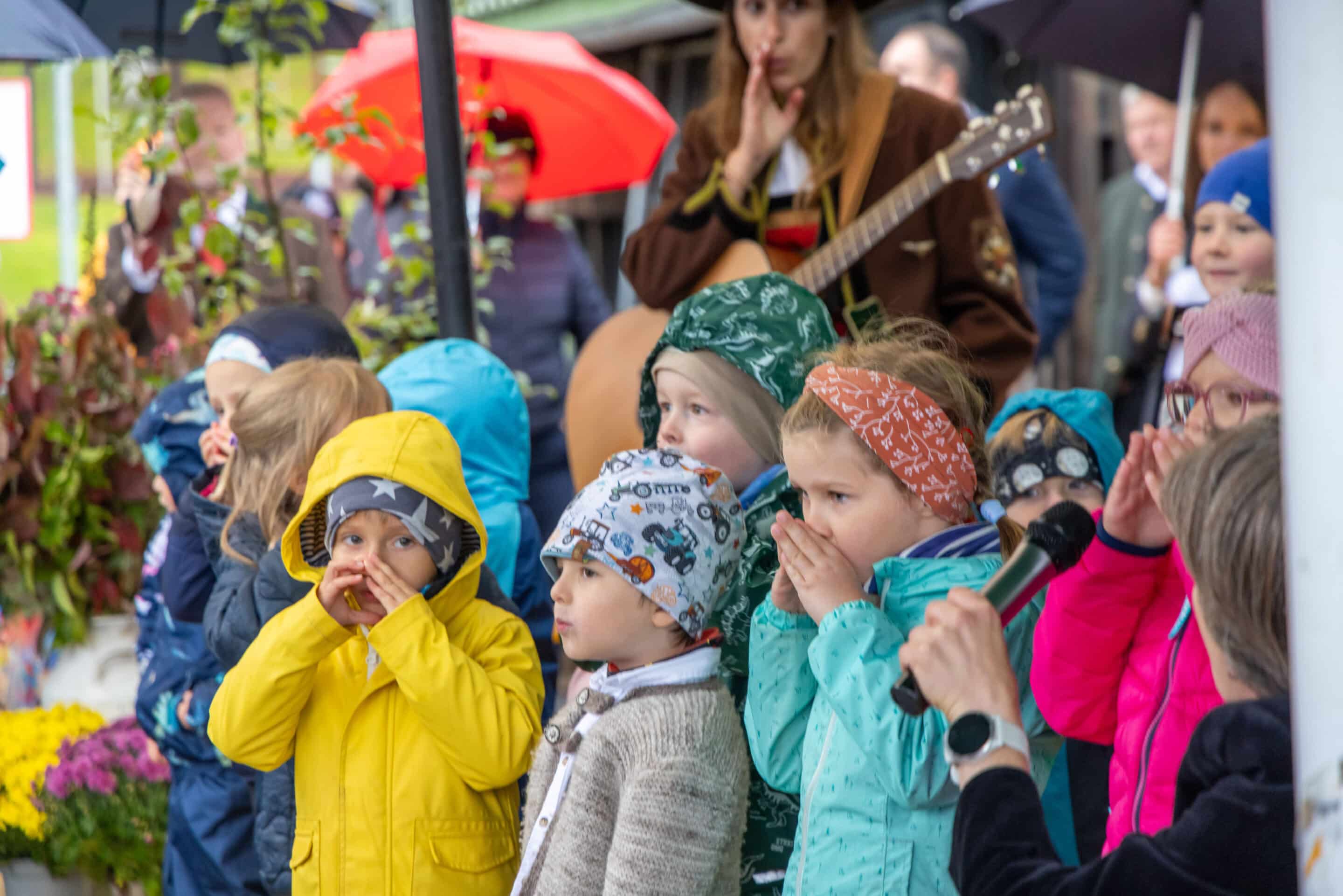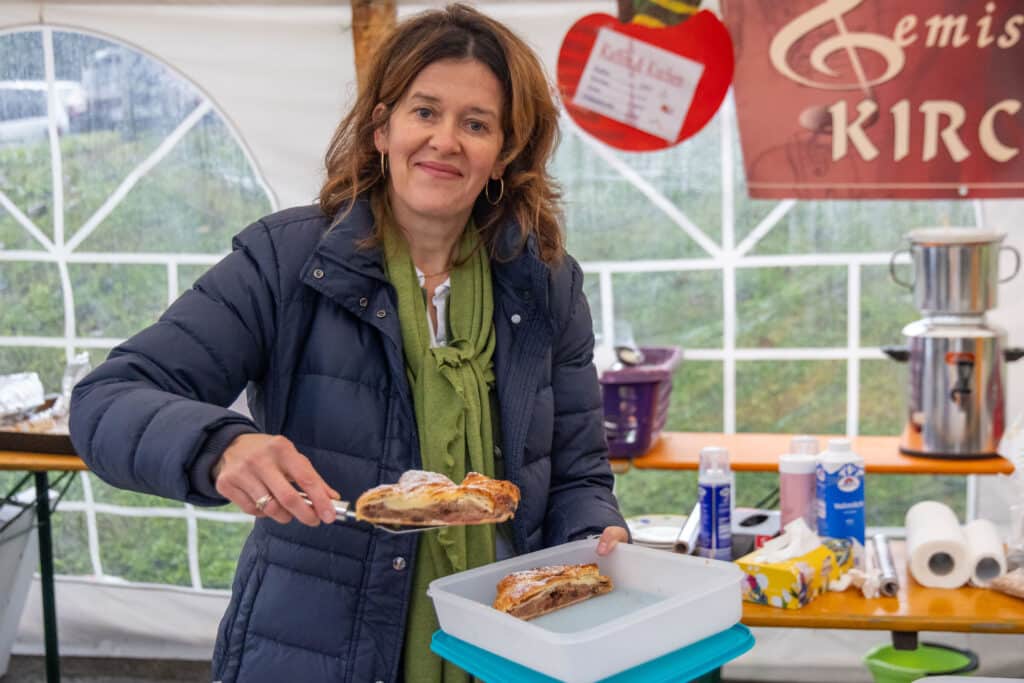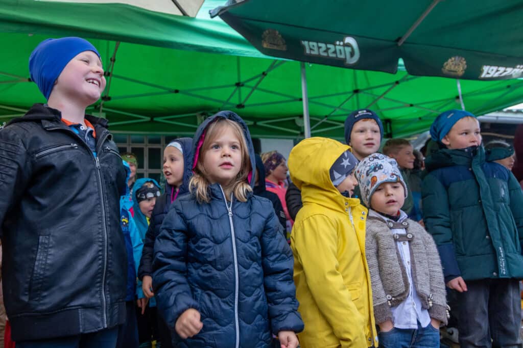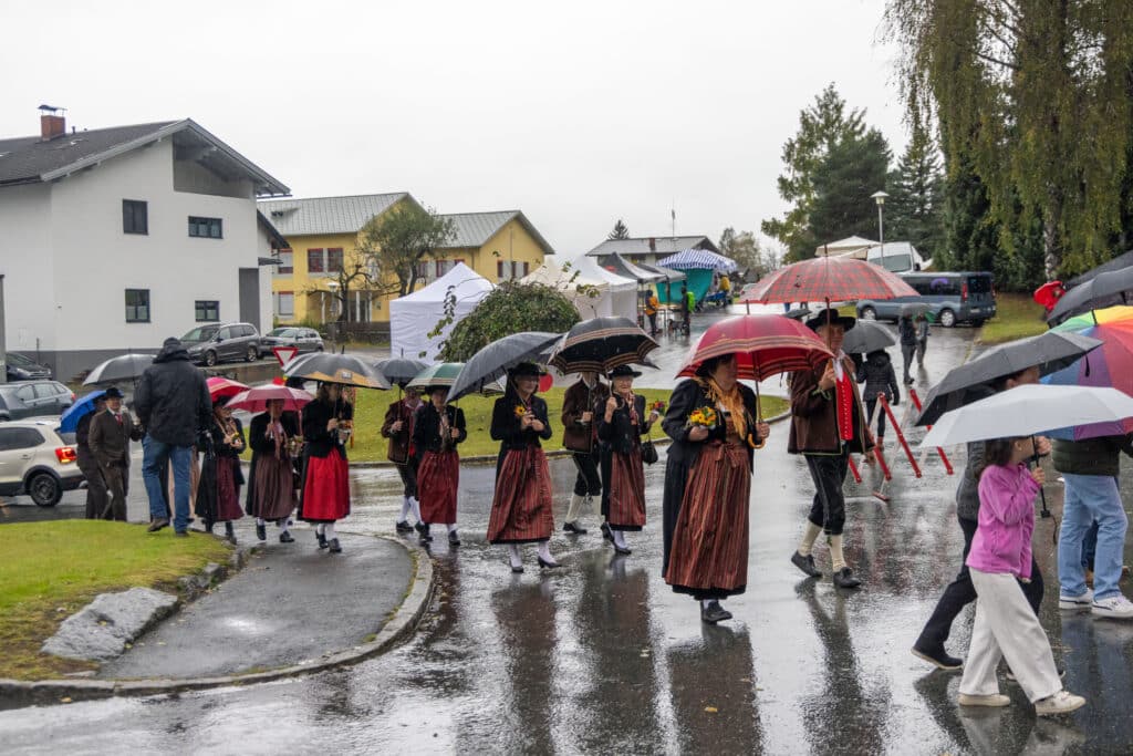 Um 10 Uhr setzte sich der Festzug in Richtung Veranstaltungsplatz in Bewegung – begleitet von der Obergailtaler Trachtengruppe. Am Parkplatz angekommen spielte die TK Alpenrose Waidegg zum Frühschoppen auf. Die Kinder des Kindergartens und der Volksschule Kirchbach umrahmten das Programm mit Gedichten und Liedern rund um das Thema Apfel. Der Gemischte Chor Kirchbach war mit Kaffee und Kuchen vertreten.