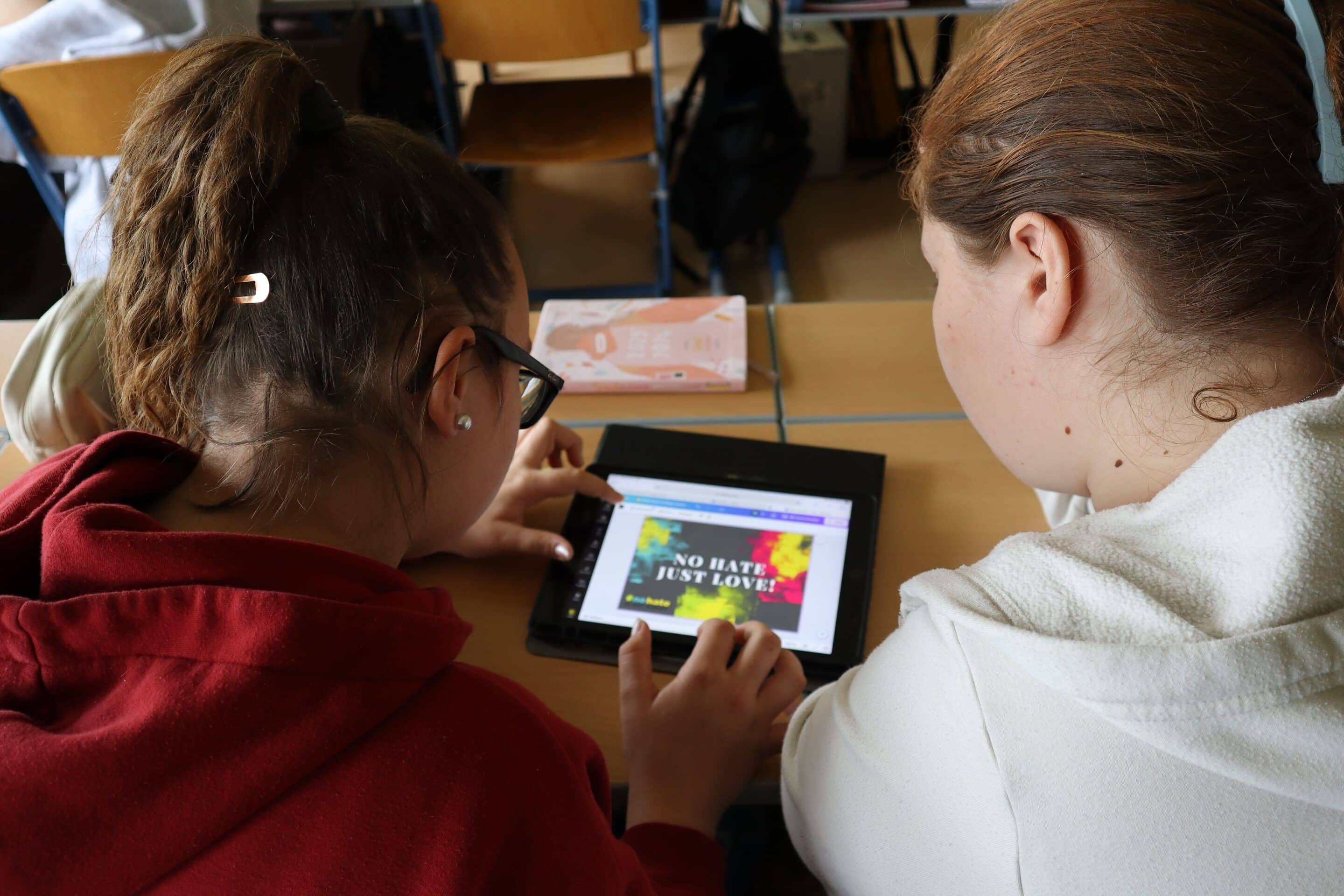 Eine Besonderheit von #nohate ist der partizipative Ansatz: Jugendliche entwickeln über ein ganzes Schuljahr hinweg eigene mediale Produkte. Im vergangenen Schuljahr setzte sich etwa die 4. Klasse der MS Völkendorf/Villach intensiv mit Hate Speech, digitaler Gewalt und Ausgrenzung auseinander. Das Ergebnis: eindrucksvolle Social-Media-Videos, die Reichweite und Sichtbarkeit im Einsatz gegen Hass schaffen. Auch in den Jahren davor entstanden im Rahmen des Projekts bereits eine eigene Website, Postkarten, Sticker und ein Videoclip.