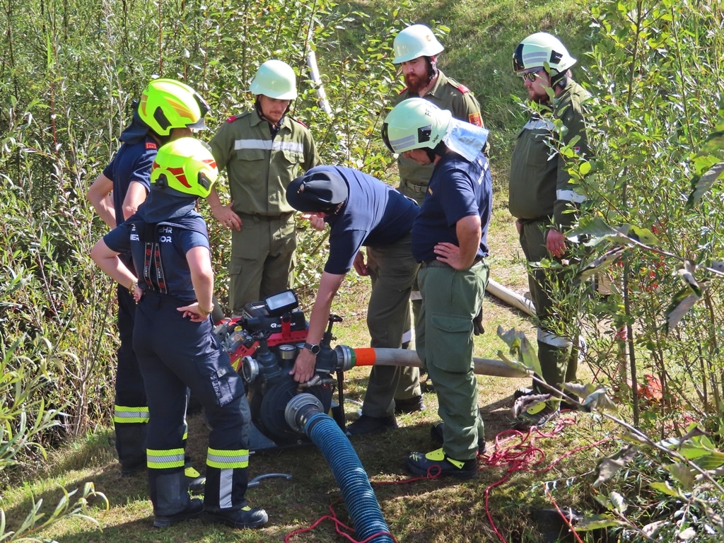 Nach einem Vormittag der Theorie im Lehrsaal, fand die restliche Ausbildung an den verschiedenen Tragkraftspritzen, Notstromaggregaten, Schmutzwasser- und Tauchpumpen im Freien statt. Den Abschluss der Ausbildung bildete eine gemeinsame Übung mit dem Thema „Wasserförderung über eine längere Wegstrecke“ sowie eine schriftliche und praktische Prüfung. Dabei konnten acht „Ausgezeichnete Erfolge“ verzeichnet werden.