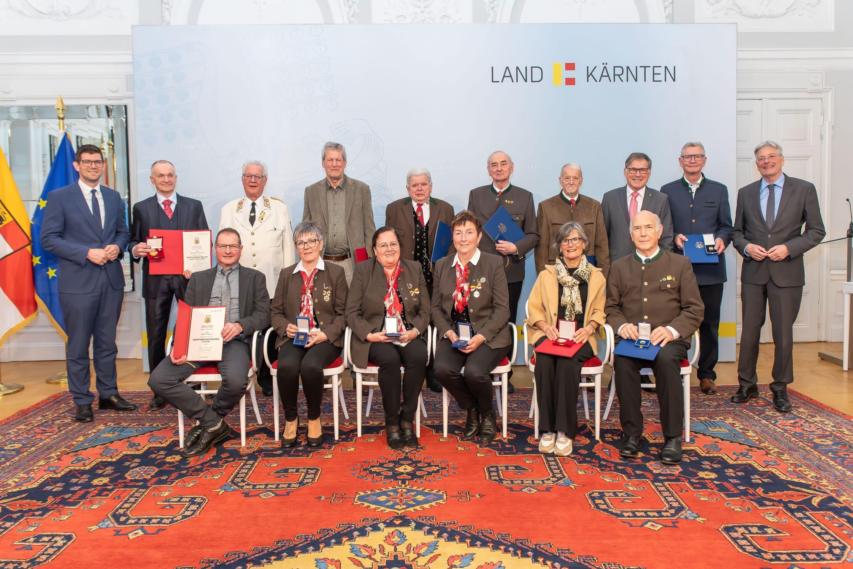 Sportverdienstzeichen in Gold mit Brillanten gingen an Johann Huber als Obmann des Volleyballklubs Wörther-See-Löwen Klagenfurt und Josef Laibacher als Obmann der ATSC Kelag Wildcats Klagenfurt. Beide bringen sich nicht nur in ihren Vereinen, sondern auch im Kärntner Volleyballverband ein. Sportverdienstzeichen in Silber erhielten Manfred Plössnig als ehemaliger Obmann der Tennisunion Winklern-Rangersdorf und Gerda Oberbichler für ihre Tätigkeit als Kassierin der Tennisunion Winklern-Rangersdorf.