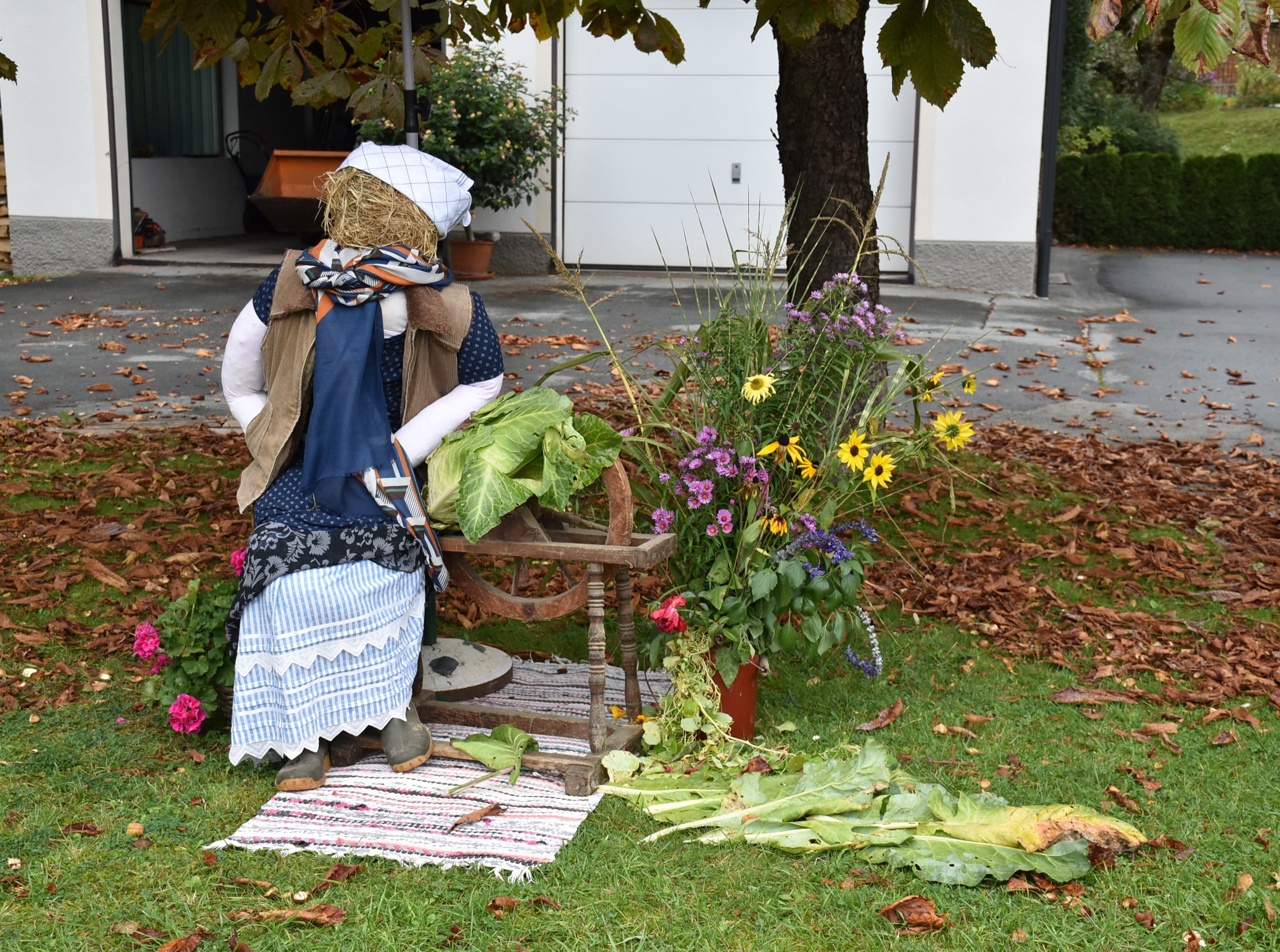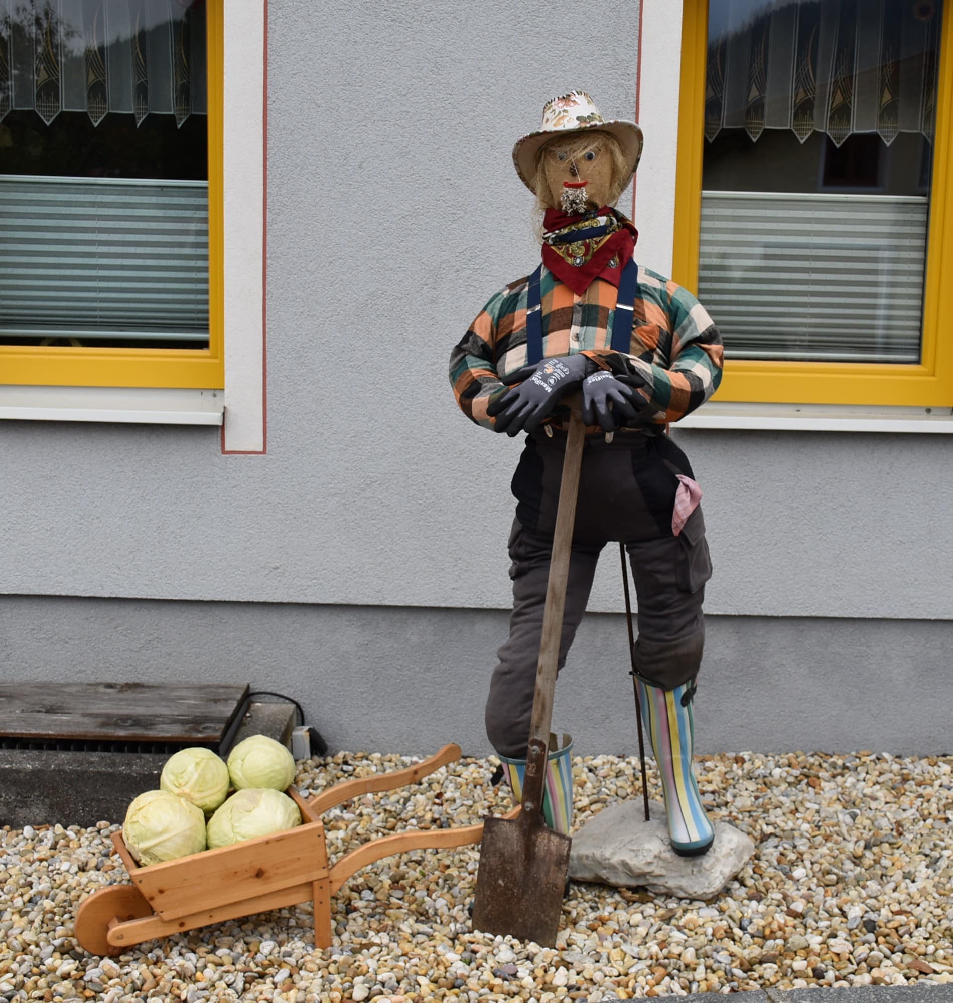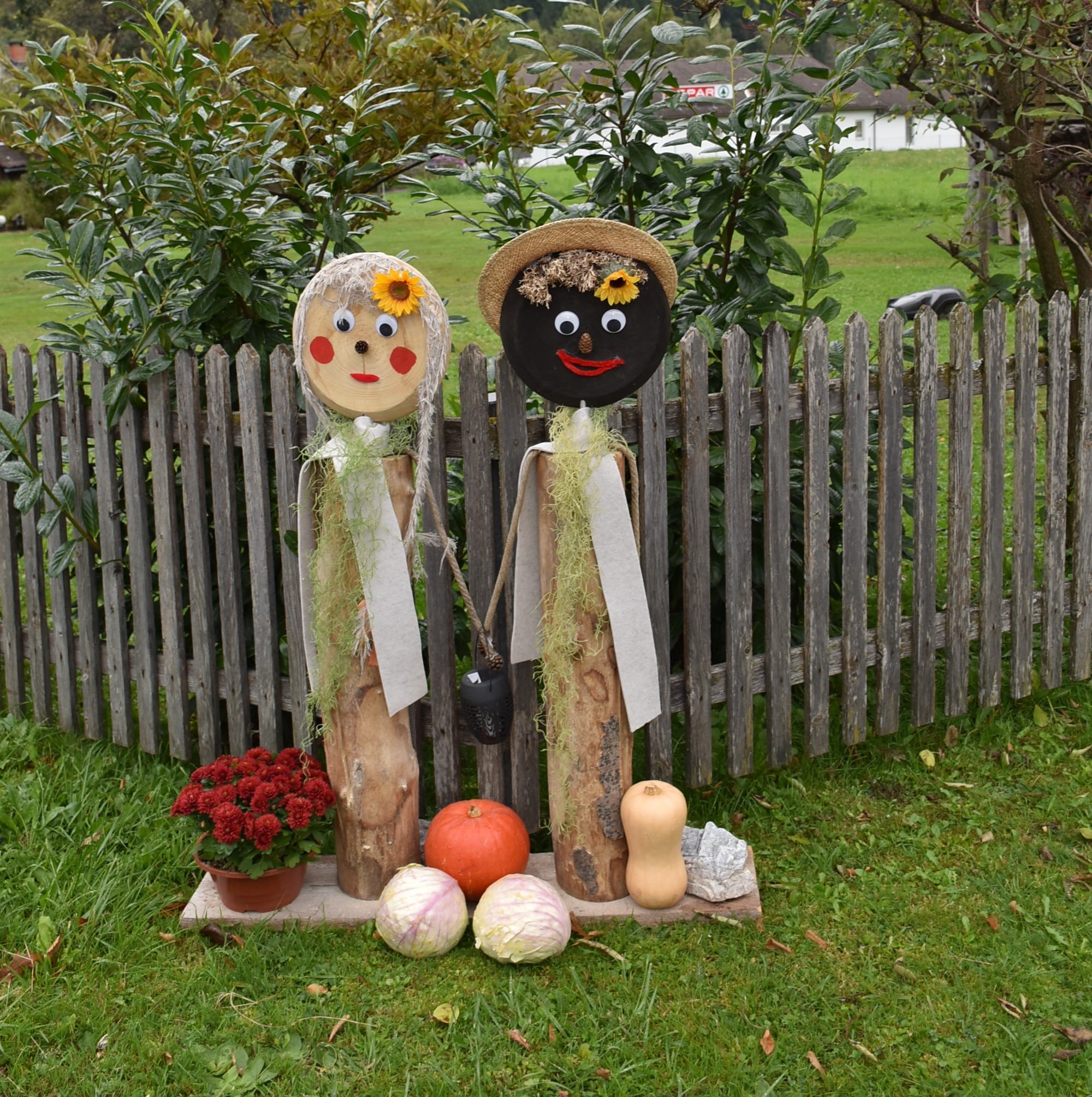 Kreative Krautscheuchen begrüßen die Besucher