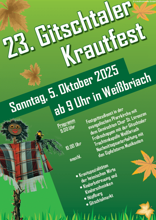 Die Veranstalter der Dorfgemeinschaft Weißbriach laden herzlich ein: „Kommt vorbei, erlebt Gitschtaler Gastfreundschaft und lasst euch von den Spezialitäten und der Atmosphäre des Krautfestes begeistern.“