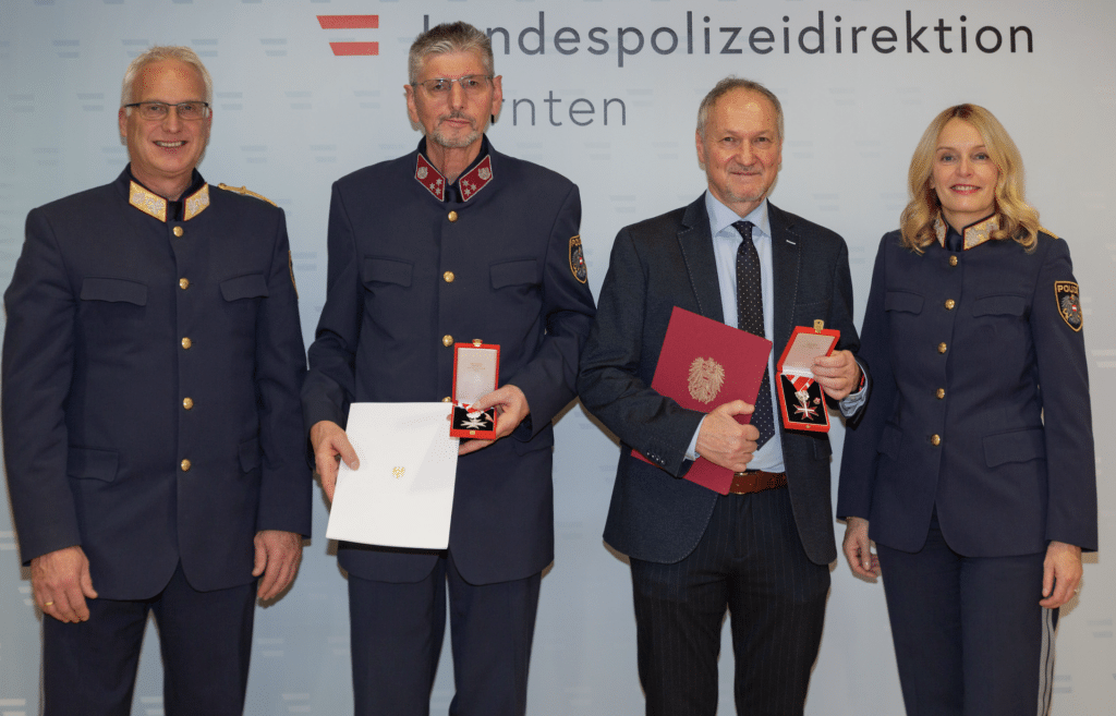 Das „Silberne Ehrenzeichen der Republik Österreich“ ging an Chefinspektor i.R. Werner Niedermüller, vormals im Landeskriminalamt tätig.