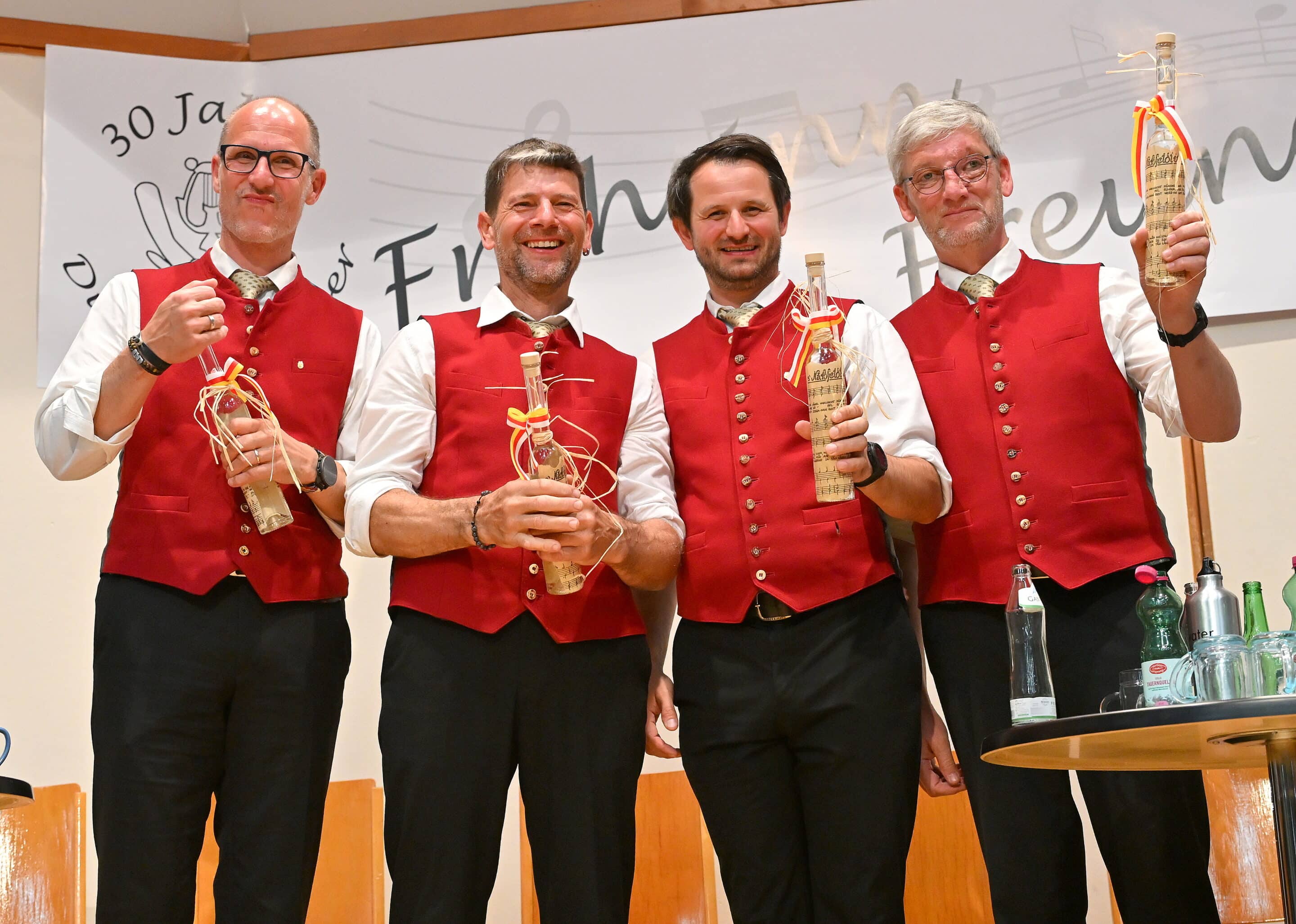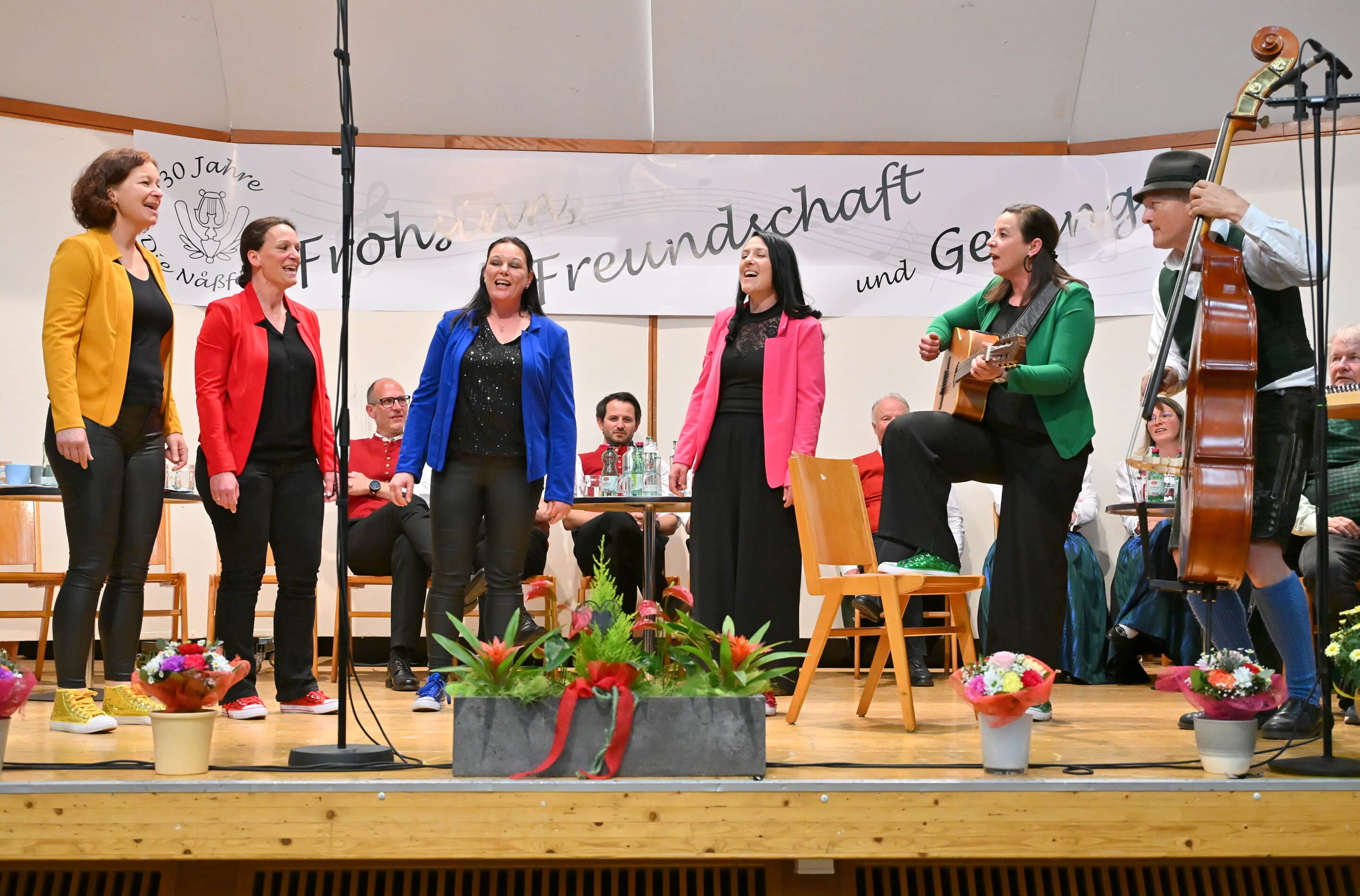 Anlässlich ihres Jubiläums lud die bekannte Sängergruppe „Nåßfelder“, bestehend aus Oswin und Charlotte Rauter, Petra Jost, Andrea Herzog sowie Tamara und Gerold Katzer, drei maßgeschneidert zum Anlass passende Kleingruppen als Gäste zum Mit-Feiern ein.