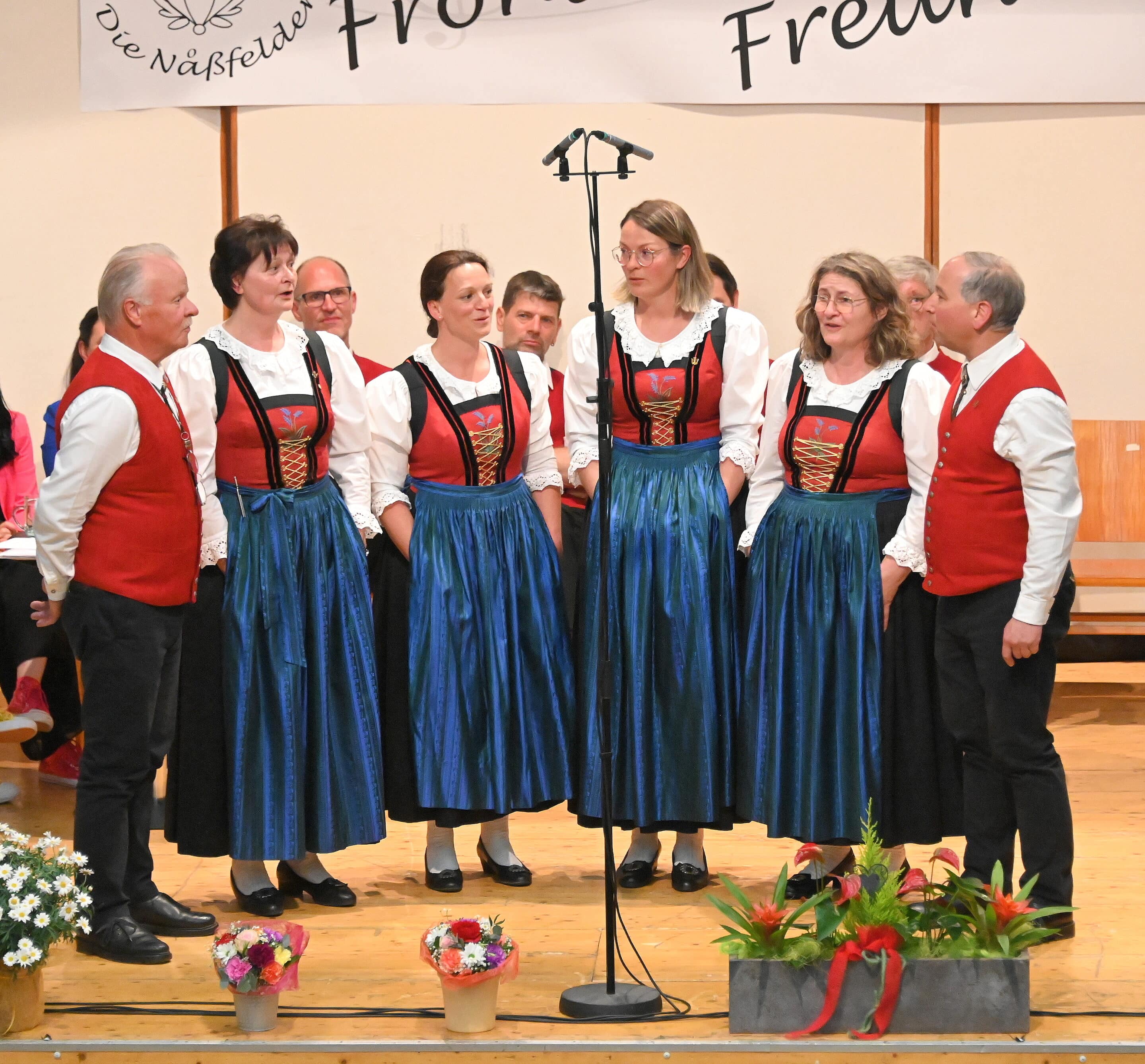 Im Rahmen des doch über drei Stunden dauernden Nachmittags-Programmes in frühsommerlich gemütlicher Atmosphäre war der Spirit der „Nåßfelder“ deutlich spürbar: „Innere große Freude am gemeinsamen Singen und Musizieren“.