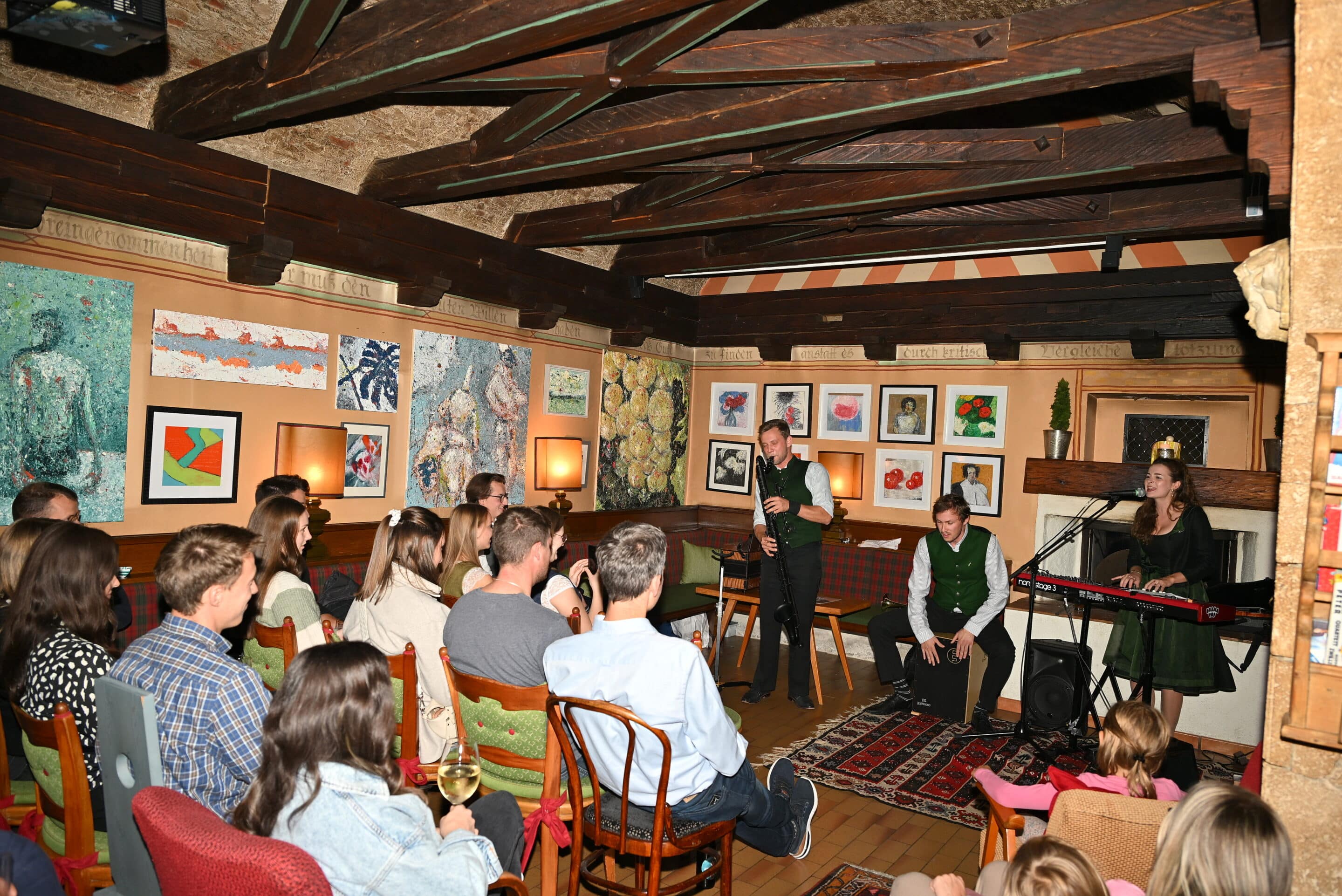 Die Musikgruppen „Hecki Trio“ und „Gschreams“ lieferten einen Unplugggend-Hörgenuss der Extraklasse. Die fünf jungen Musiker aus der Südoststeiermark und Kärnten begeisterten mit ihrer jungen, frechen Spielart das Publikum in Almut`s heimeligem Kaminzimmer. Das musikalisch virtuose Konzerterlebnis bot alle Genres von authentischer, neu interpretierter Volksmusik, Jazz oder Pop, begleitet von humorvollem Gesang und Wortwitz. Im vielfältigen Repertoire fanden sich Eigenkompositionen, bekannte Melodien, aber auch Anleihen von Herbert Pixner. Die Ausnahmemusiker verbindet die gemeinsame Freude am Musizieren, handwerkliches Können, musikalische Neugier und spürbare Bühnenfreude. Ein „Erntedank der Musik.“ Almut Knaller ist es jedenfalls gelungen, das begeisterte Publikum mit allen Sinnen zu inspirieren und freut sich, auch in der jetzt beginnenden Zwischensaison ihre Gäste bodenständig verwöhnen zu dürfen.