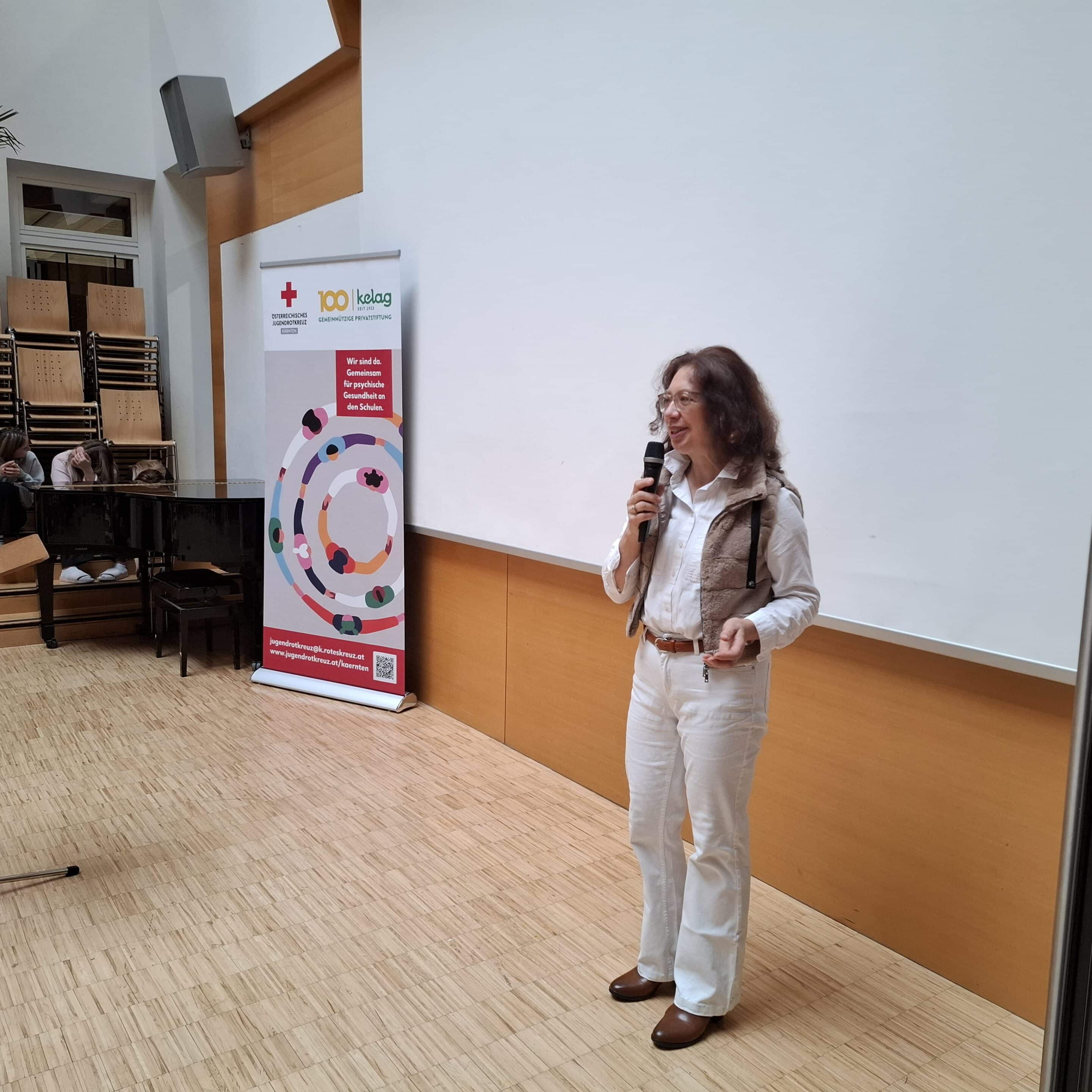Schulärztin Dr. Barbara Wernisch instruierte die Schüler:innen an ihrer Station zu den Themen psychologische erste Hilfe und Rücksichtnahme im täglichen Miteinander.