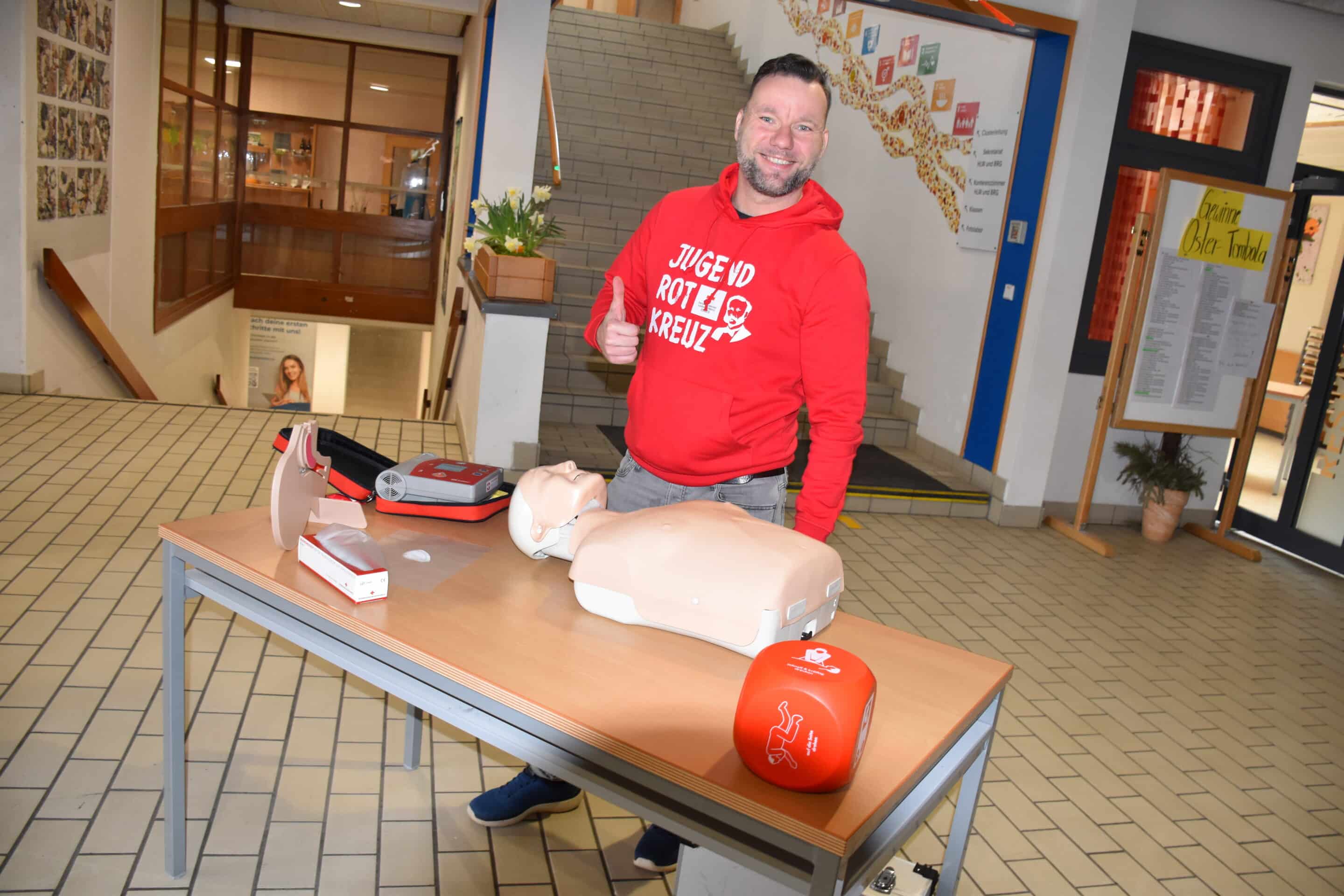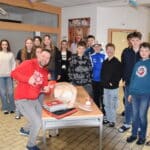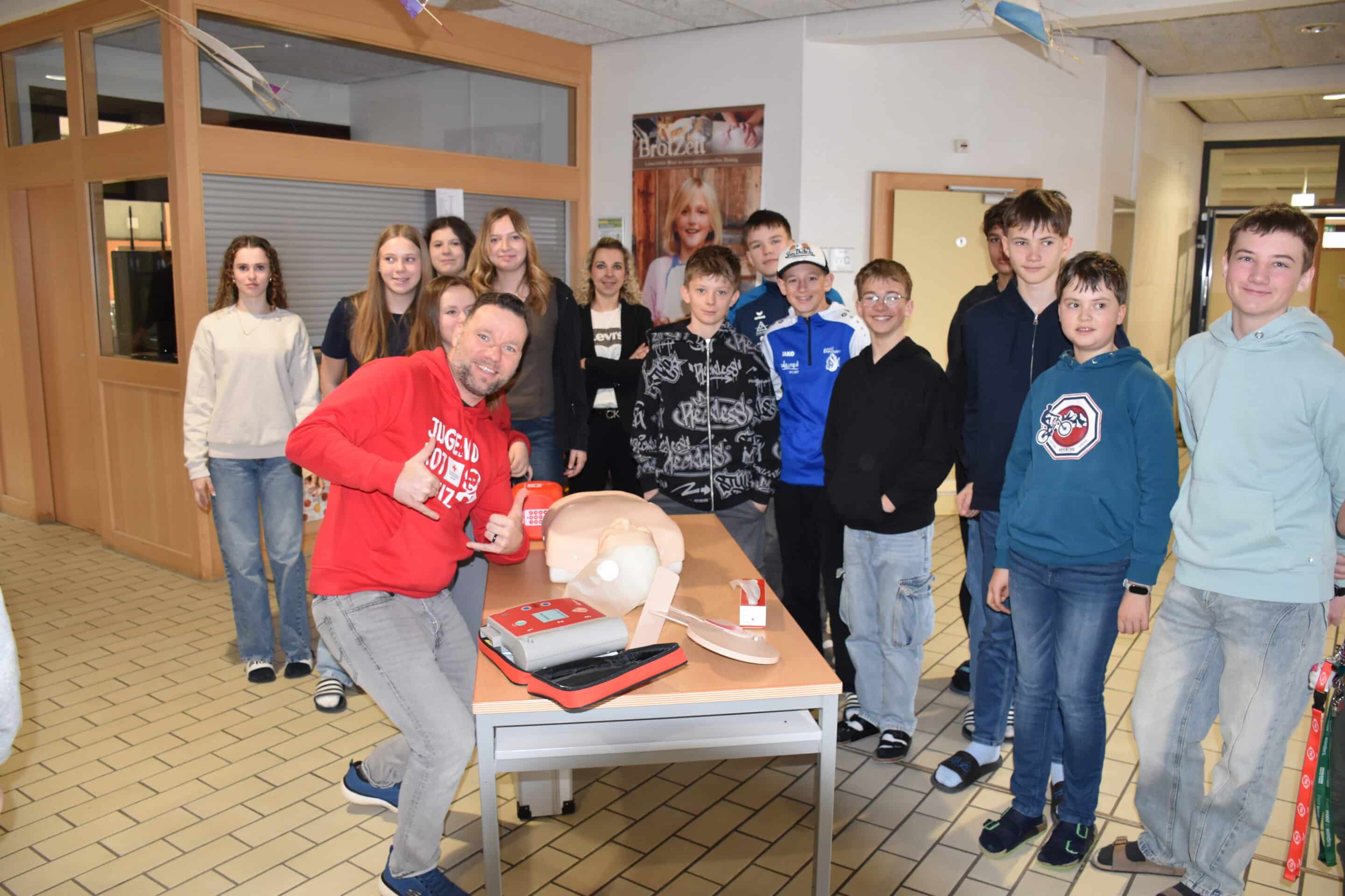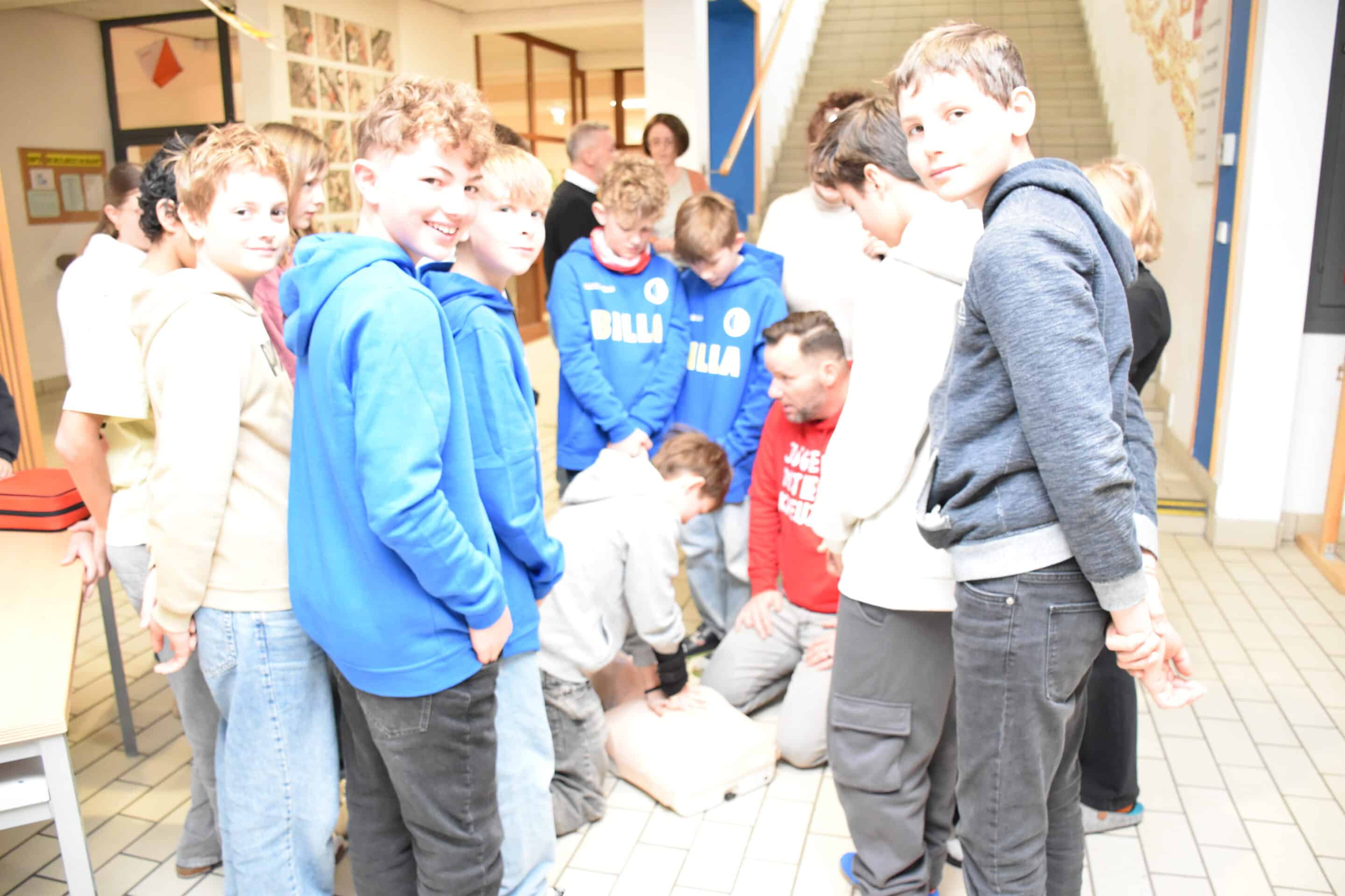 An einer Station konnten die Jugendlichen an einer Übungspuppe (Reanimationspuppe) selbst ausprobieren, wie eine Herzdruckmassage sowie die Mund-zu-Mund-Beatmung richtig durchgeführt werden – eine wichtige Erfahrung für den Ernstfall.