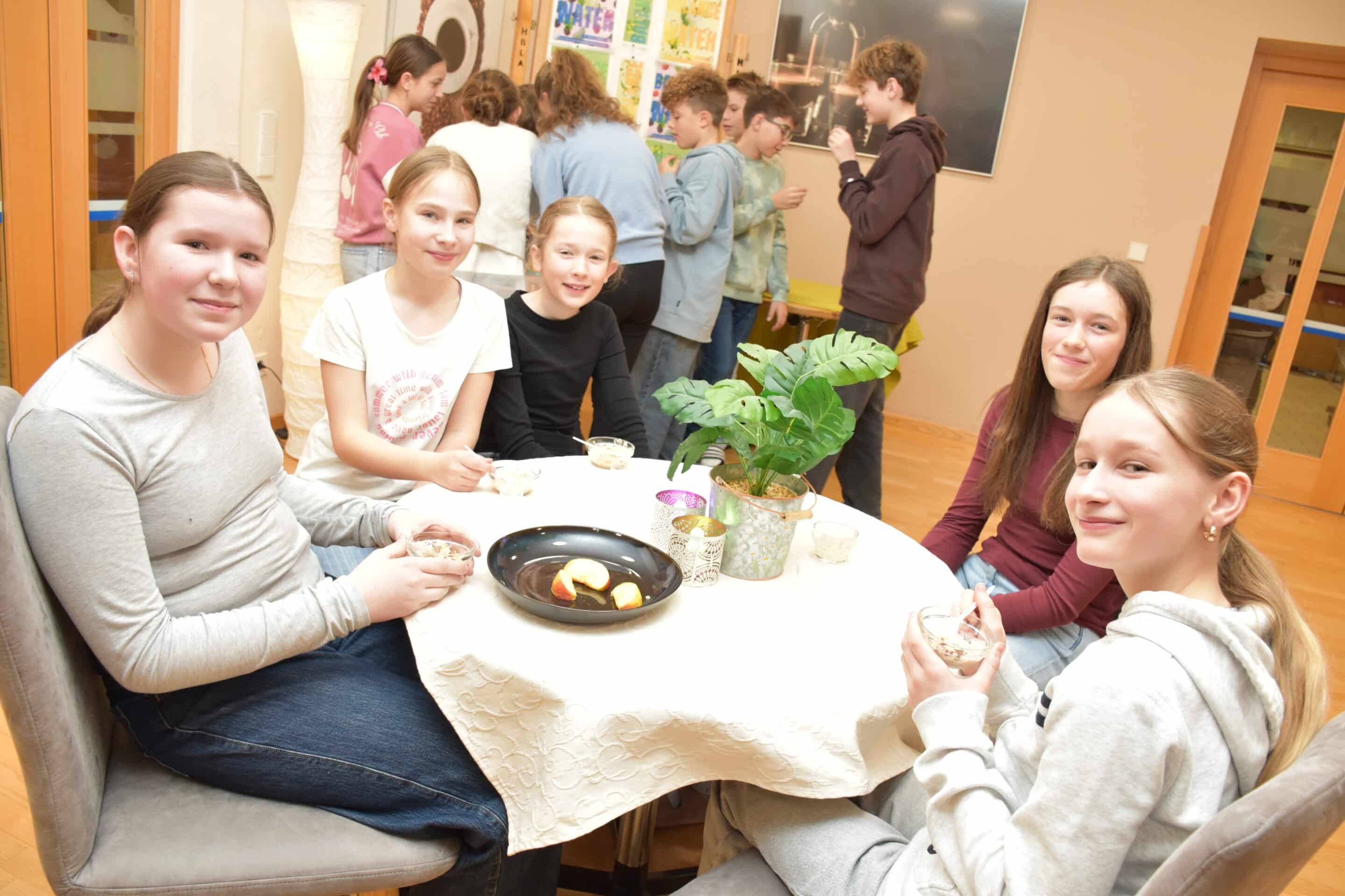 Für den kulinarischen Rahmen sorgten die Schülerinnen und Schüler der HLW unter der Leitung von Fachvorständin Beatrix Frenzl. Mit viel Engagement bereiteten sie gesunde Snacks sowie erfrischende, selbstgemachte Getränke zu. Säfte, Müsli usw. wurden von den Teilnehmern in der „Kostbar“ an der letzten Station gerne probiert! Ein gutes Beispiel dafür, wie gesunde Ernährung im Alltag umgesetzt werden kann.