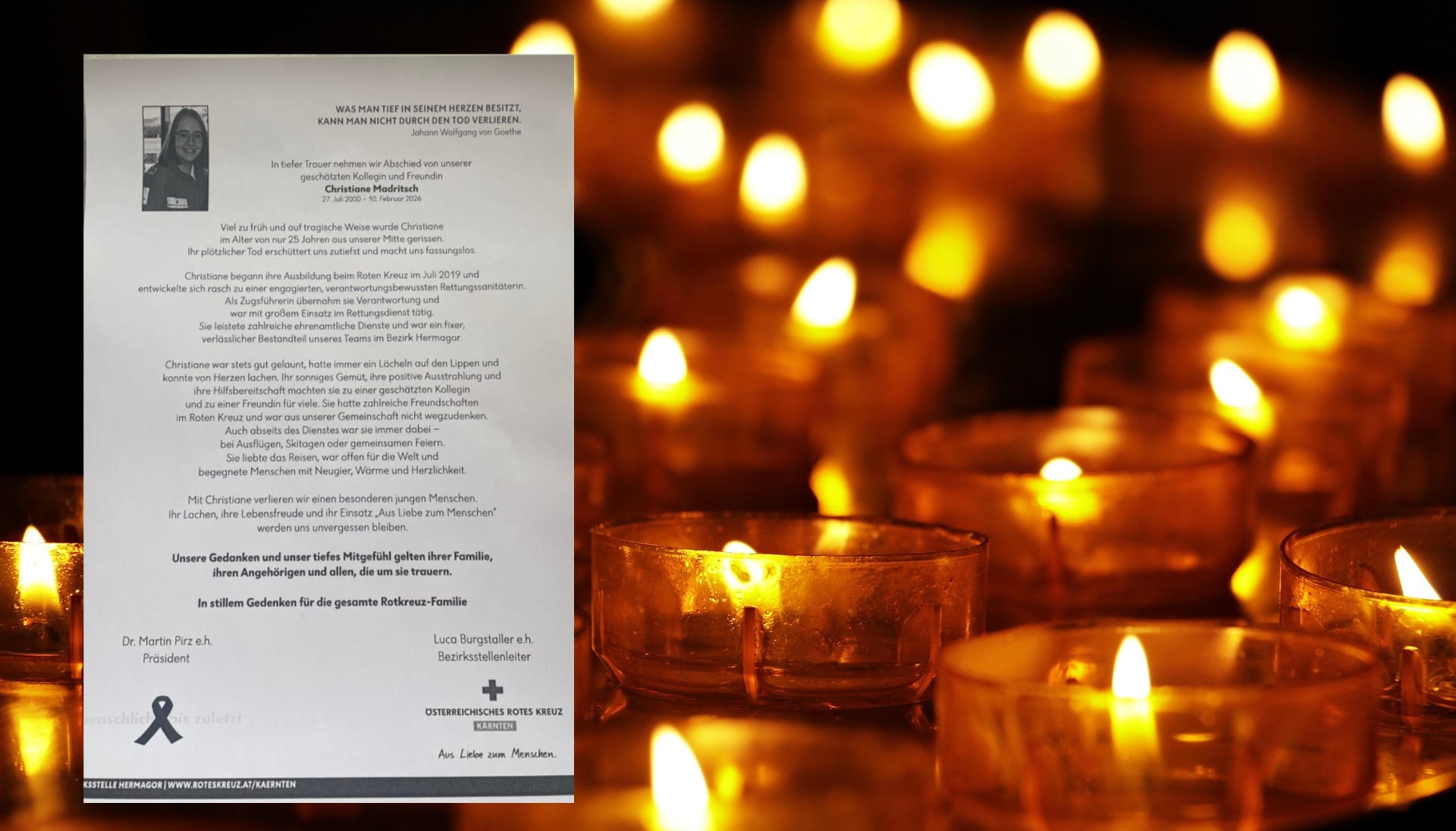 Als Radiologietechnologin stand Christiane mitten im Leben. Neben ihrem unermüdlichen ehrenamtlichen Einsatz widmete sie ihre Freizeit dem Reisen, war offen für die Welt und begegnete Menschen stets mit Herzlichkeit. Nun nehmen Familie, Freunde und die Gemeinschaft Abschied von einer jungen Frau, die noch ihr ganzes Leben vor sich hatte. Die Aufbahrung findet am Freitag, den 20. Februar 2026, ab 16:00 Uhr in der Pfarrkirche St. Stefan im Gailtal, die heilige Seelenmesse findet um 17:00 Uhr statt. Die Urnenbeisetzung erfolgt zu einem späteren Zeitpunkt im engsten Familienkreis. Aus Respekt wurden die Kinderfaschingsveranstaltungen in Vorderberg und St. Stefan abgesagt.