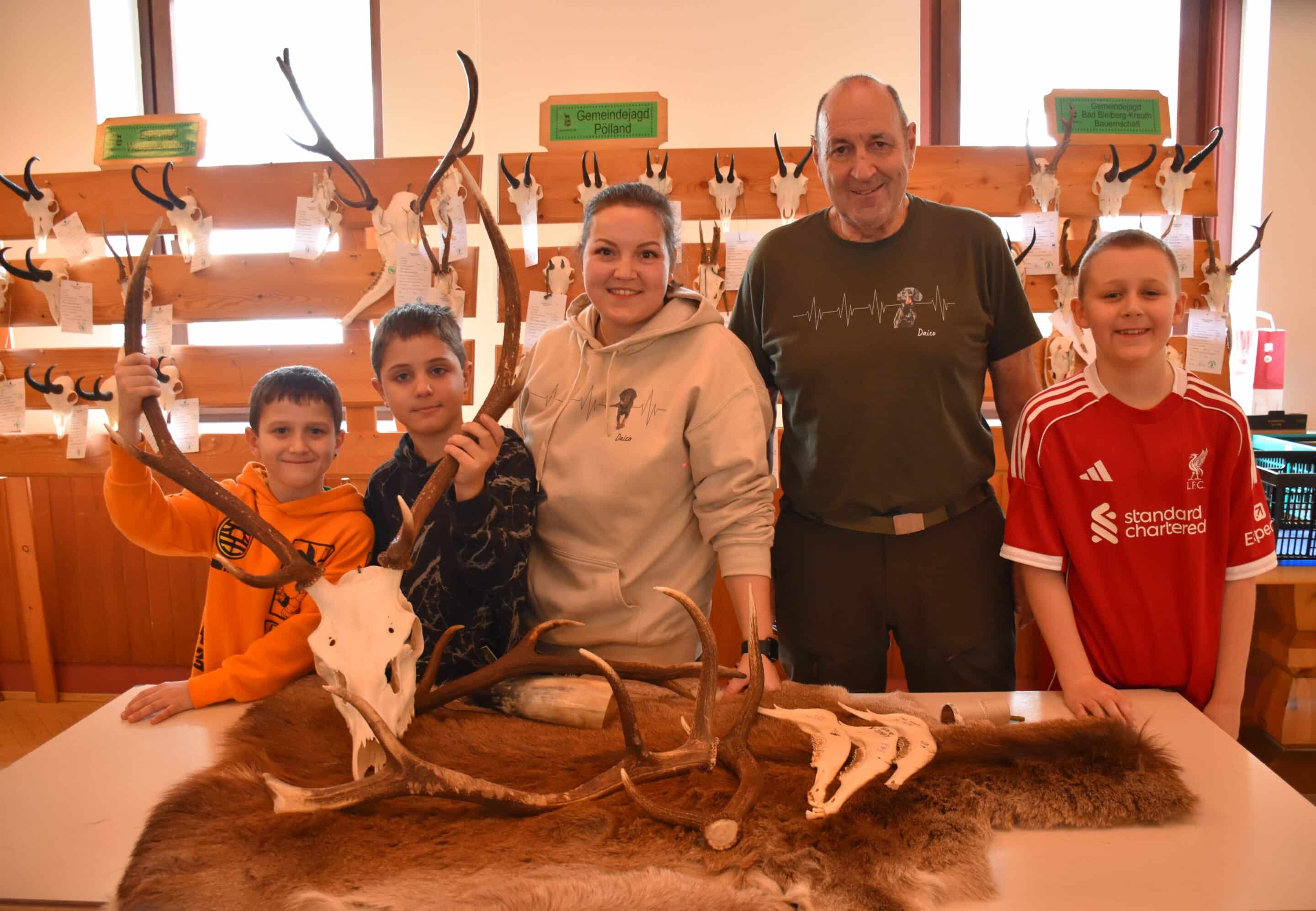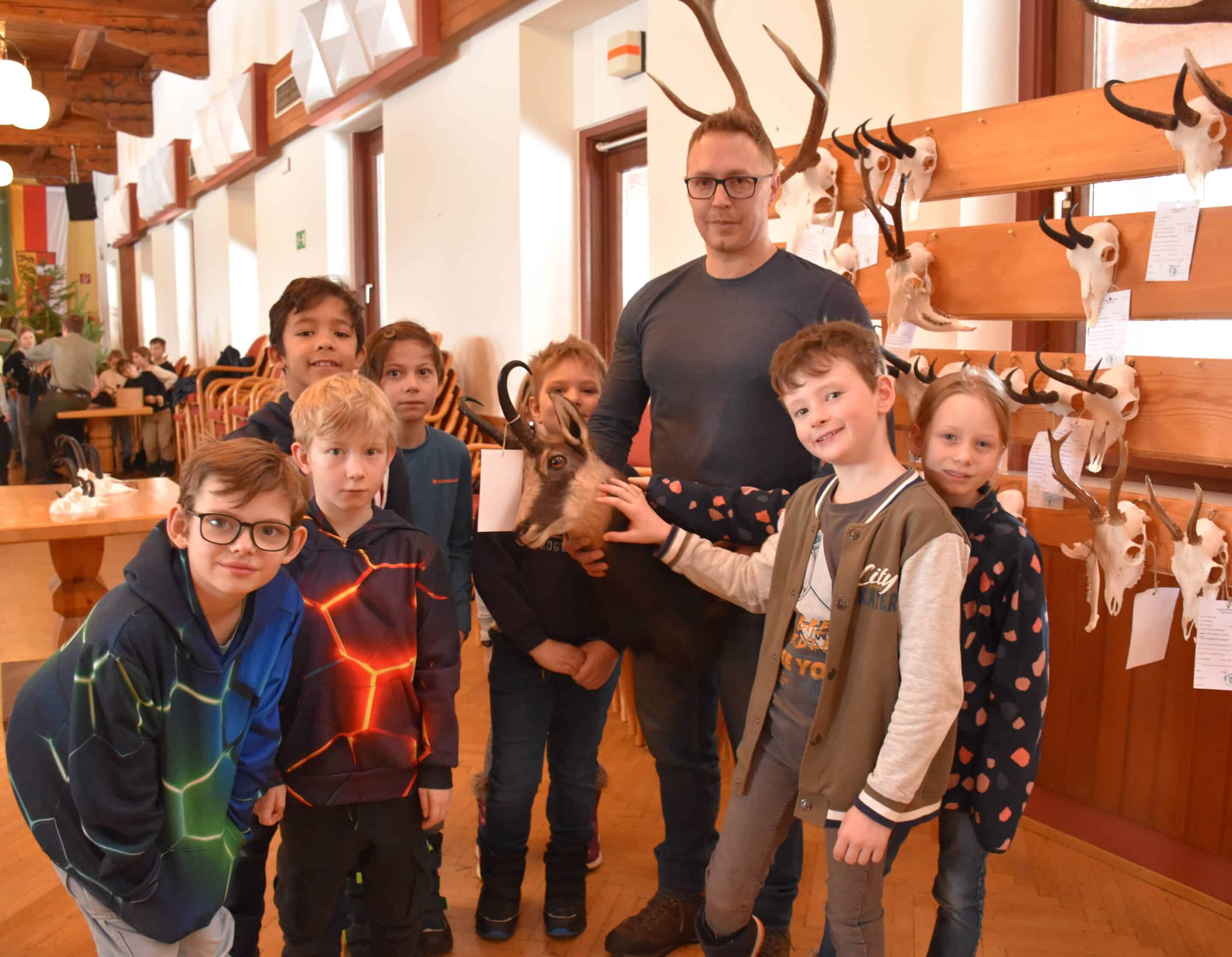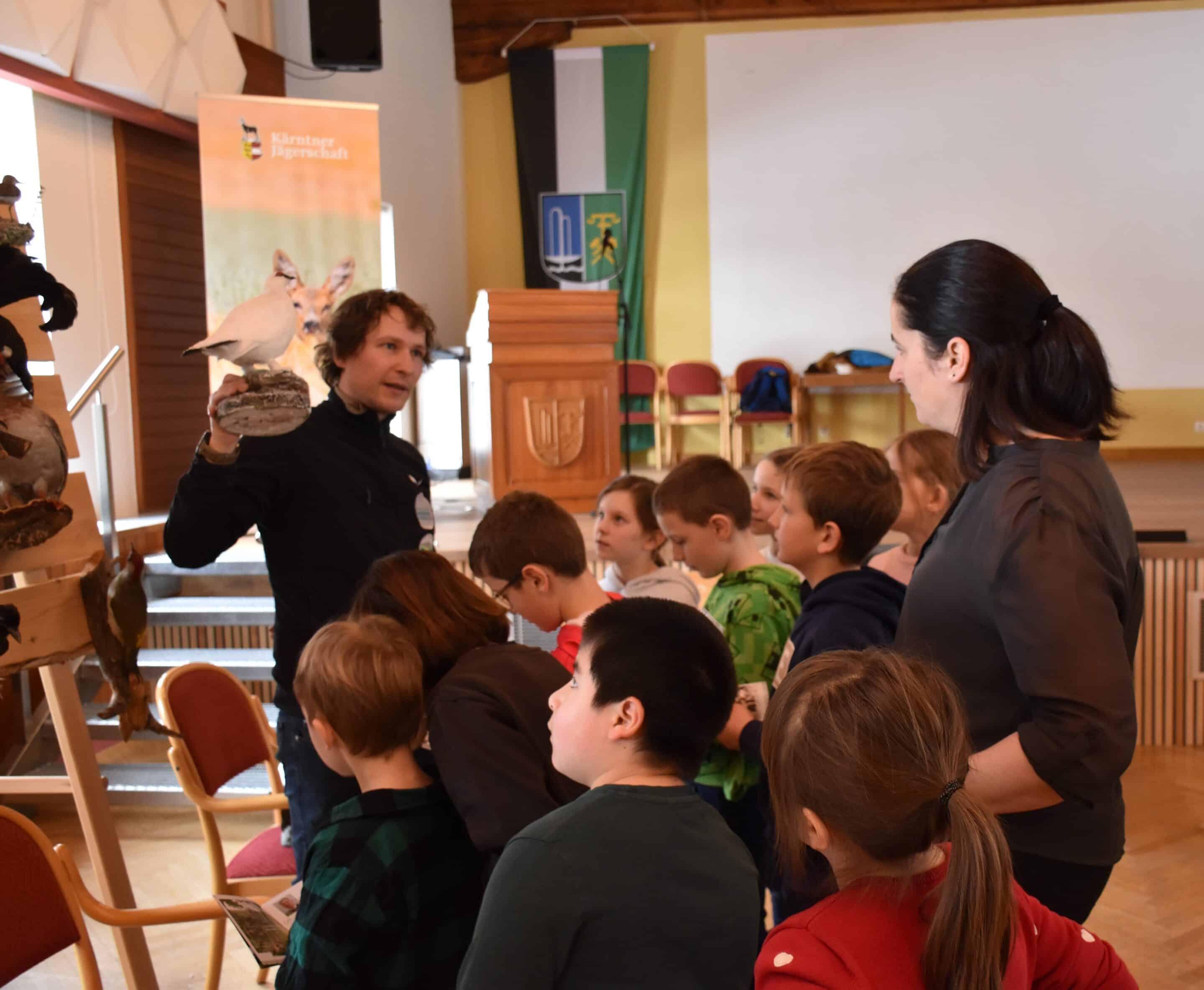 60 Schülerinnen und Schüler der Volksschule Bad Bleiberg erhielten einen spannenden Einblick in die Aufgaben der Jägerschaft. Organisiert von Hegeringleiter Ferdinand Tarmann, Erik Wollinger (Obmann Bad Bleiberg / Kreut Bauernschaft) sowie den Aufsichtsjägern des Hegerings, wurde den Kindern Wissen über Schalenwild, Vögel, den Jagdhund und das Jagdhorn vermittelt.