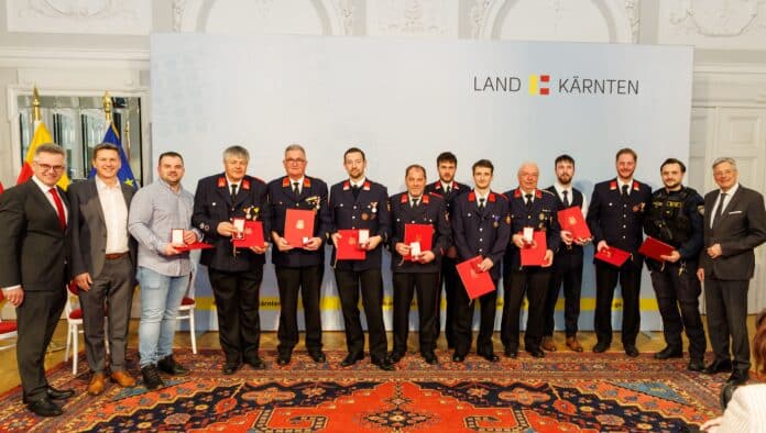 Das Kärntner Ehrenkreuz für Lebensrettung wurde an mehrere Feuerwehrkameraden der Freiwilligen Feuerwehren Möllbrücke und Lendorf verliehen: Brandmeister Georg Striedner, Feuerwehrmann Kurt Zweibrot, Löschmeister Stefan Brandner, Löschmeister Philipp Gritzner, Hauptfeuerwehrmann Walter Haßlacher, Feuerwehrmann Florian Huber und Brandinspektor Mario Kapeller.