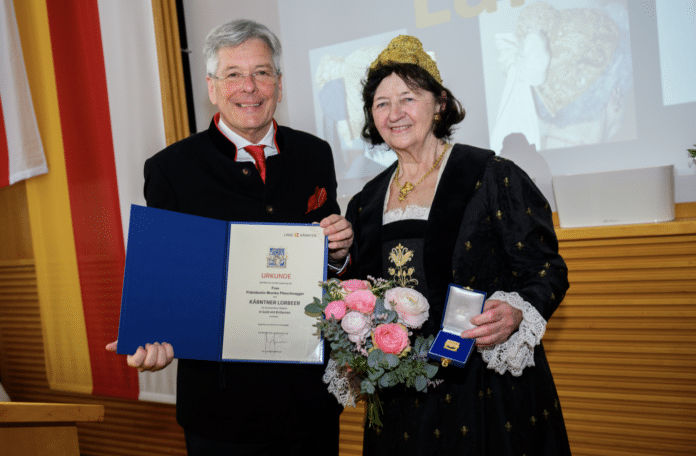 Für ihre über 60-jährige ehrenamtliche Tätigkeit wurde Landesobfrau Monika Plieschnegger mit dem Kärntner Lorbeer in Gold mit Brillanten ausgezeichnet. Die anwesenden Goldhaubenfrauen ehrten diese besondere Würdigung mit Standing Ovations.