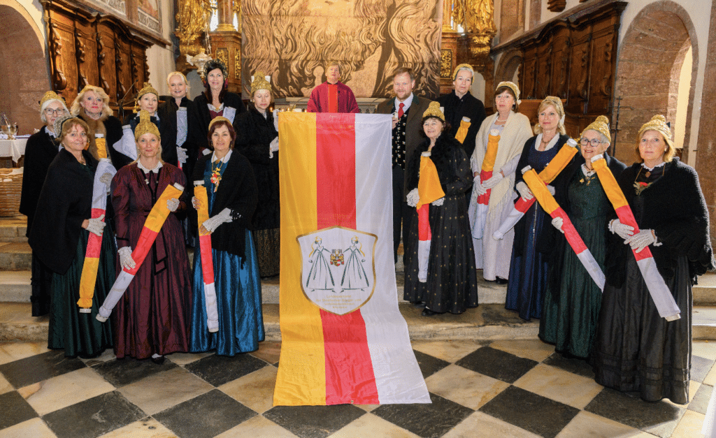 Nach dem Gottesdienst stand die feierliche Fahnenweihe im Mittelpunkt der Veranstaltung. Die neue Vereinsfahne wurde von Designerin Andrea Plieschnegger gestaltet. Jede Gruppe erhielt dabei ihre eigene Fahne, die symbolisch für ihre Vereinsarbeit und ihr Engagement für Brauchtum und Kultur steht.