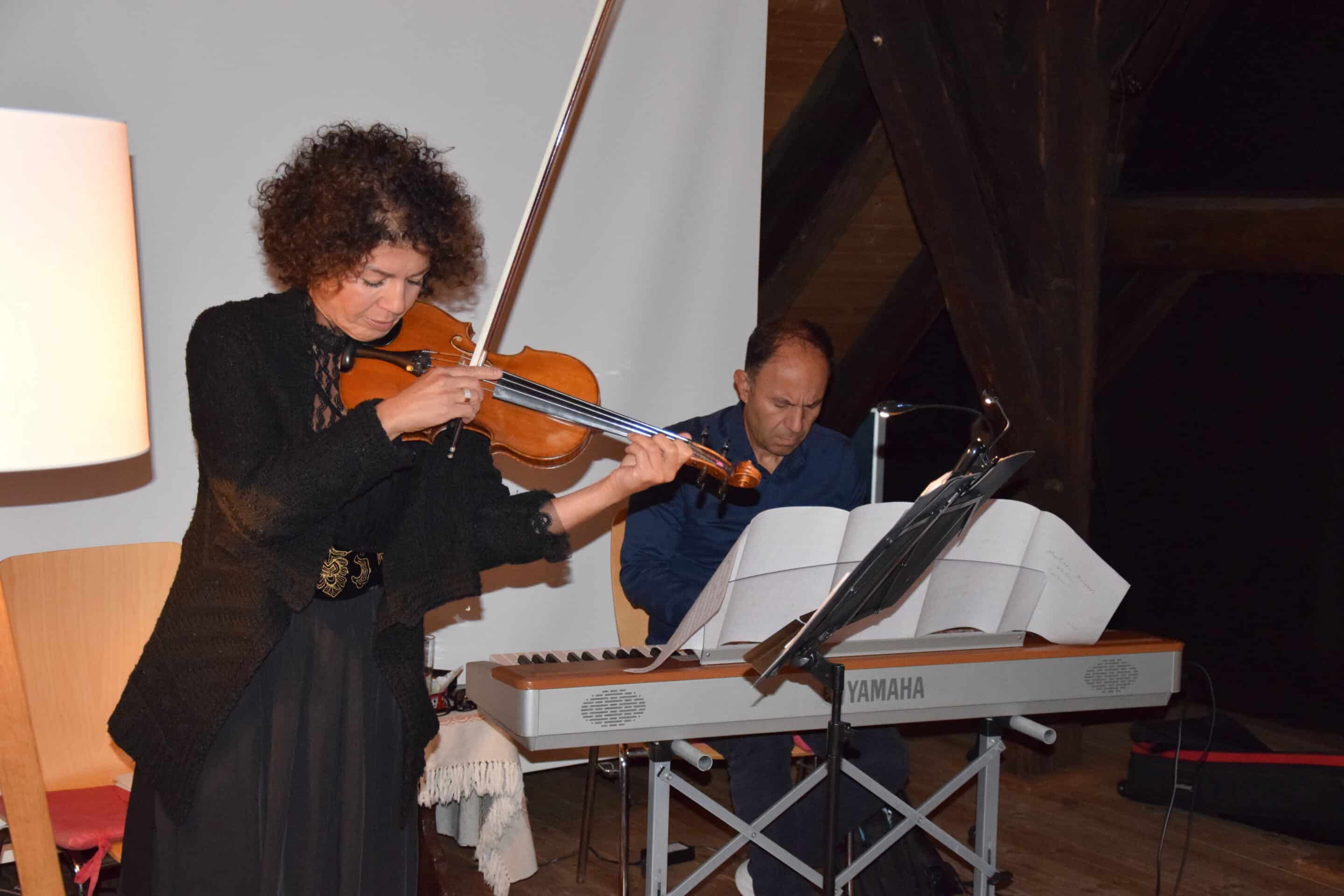 Das Duo Masis entführte das Publikum auf einen Streifzug durch Klangwelten: Von zarten armenischen Volksweisen über unvergessliche Filmmelodien von Charlie Chaplin und Ennio Morricone bis hin zu temperamentvollen Tangos von Astor Piazzolla. Mit intensiver Ausdruckskraft führte Violinistin Anna Hakobyan durch die musikalischen Geschichten – mal schwelgerisch im Legato, mal leichtfüßig im Staccato. Karen Asatrian, ließ das E-Piano mal wie ein Orchester klingen, mal wie ein feinfühliger Gesprächspartner.