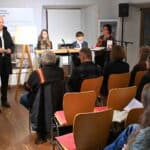 In gemütlich entspannter Atmosphäre erlebte das musikalisch und literarisch interessierte Publikum bei Kürbiscreme-Suppe, Pizza und ausgewählten Getränken einen von erfreulichem Lokalkolorit geprägten Abend in den optimal gewärmten historischen Museums-Räumen des Schlosses Möderndorf.