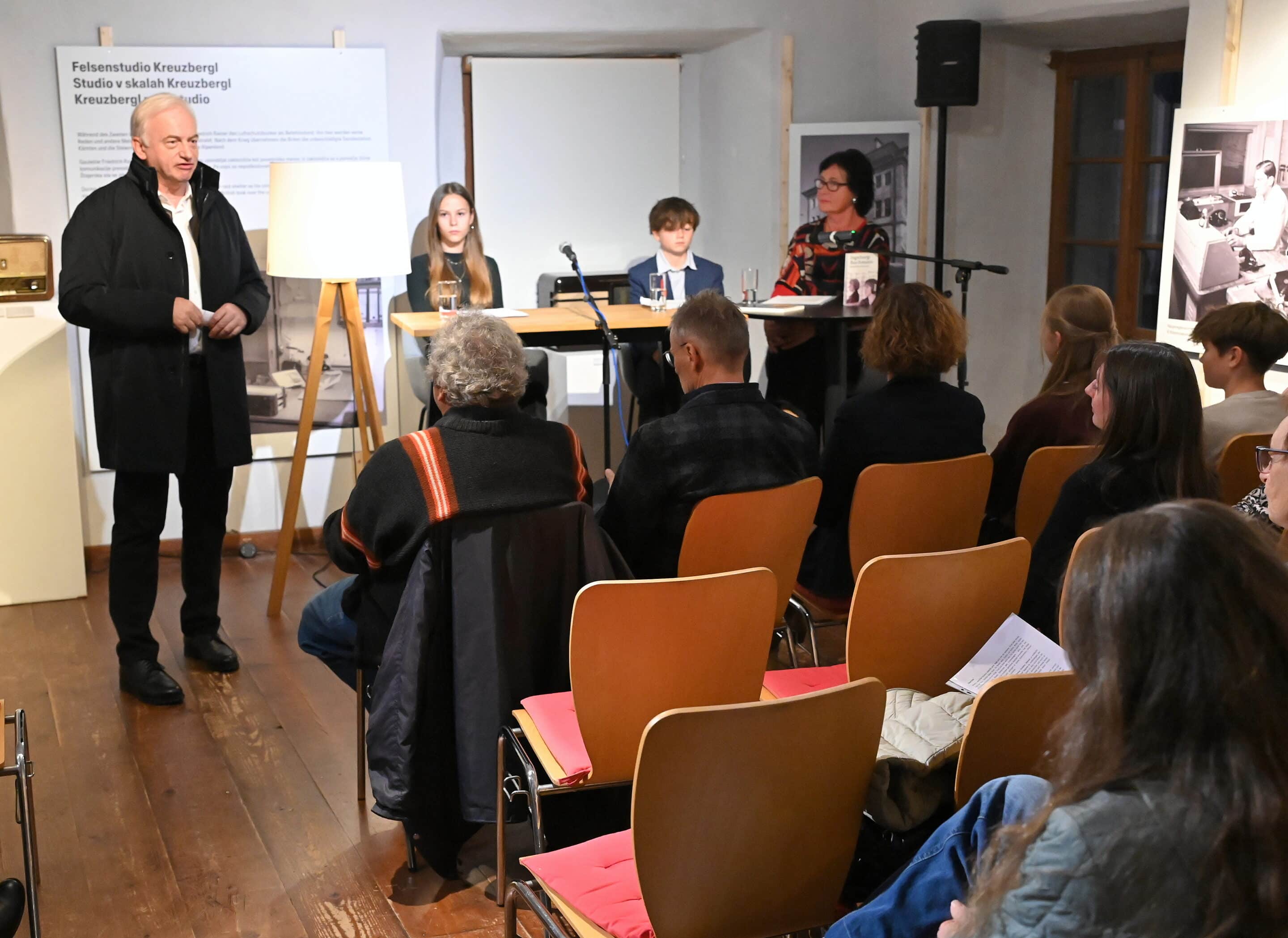 Förderungsvereins-Obmann BH Mag. Dr. Heinz Pansi präsentierte im Rahmen seiner Begrüßung das Gesangs-Duo Musik Mosaik mit Vanessa Zankl und Alexandra Philippitsch sowie die Hermagorer Literatin Irmgard Janschitz, die ihrerseits im Zuge der Vorbereitungen zur heurigen Bachmann Junior Literaturpreis-Verleihung am Samstag 18.Oktober zwei erfolgreiche junge Teilnehmer mit literarischen Kostproben vorstelle, namentlich die 15-jährige Lorena Gailer aus Mauthen mit ihrer Geschichte „Mutter Erde“ sowie den 12-jährigen Gitschtaler Mathias Strömpfl mit seinem Beitrag „Im Schatten des Krieges“. Beide besuchen das Gymnasium in Hermagor.