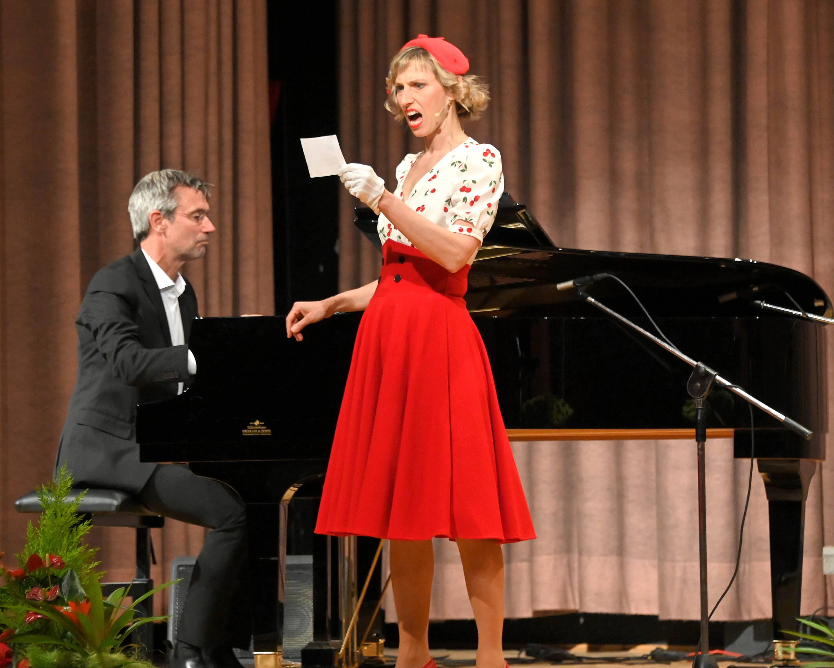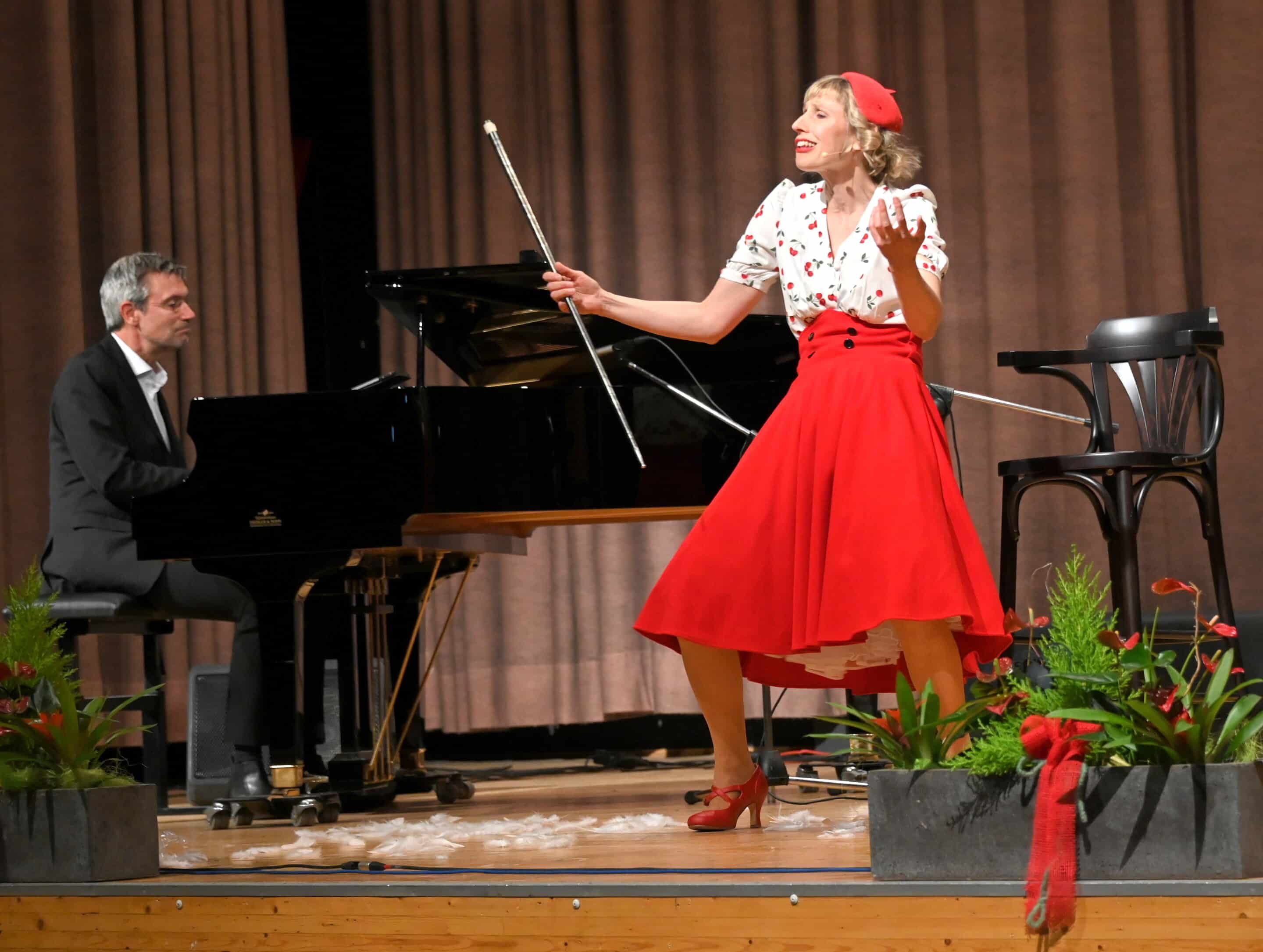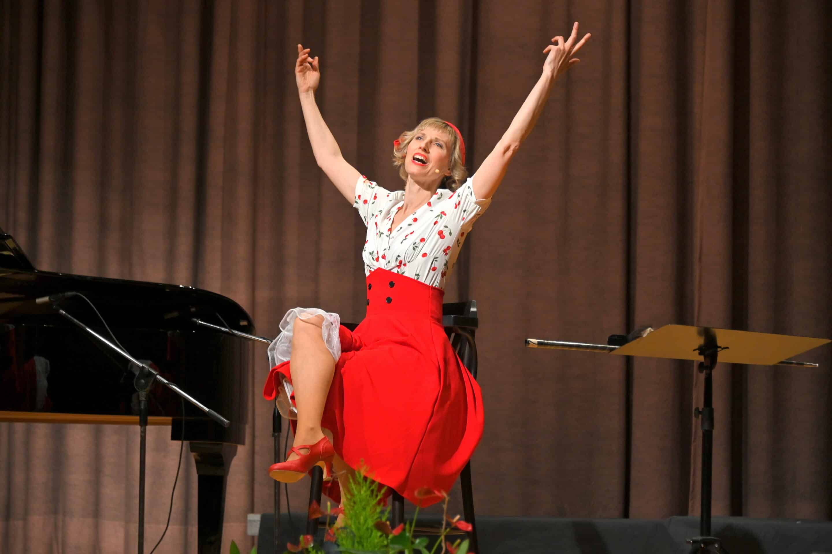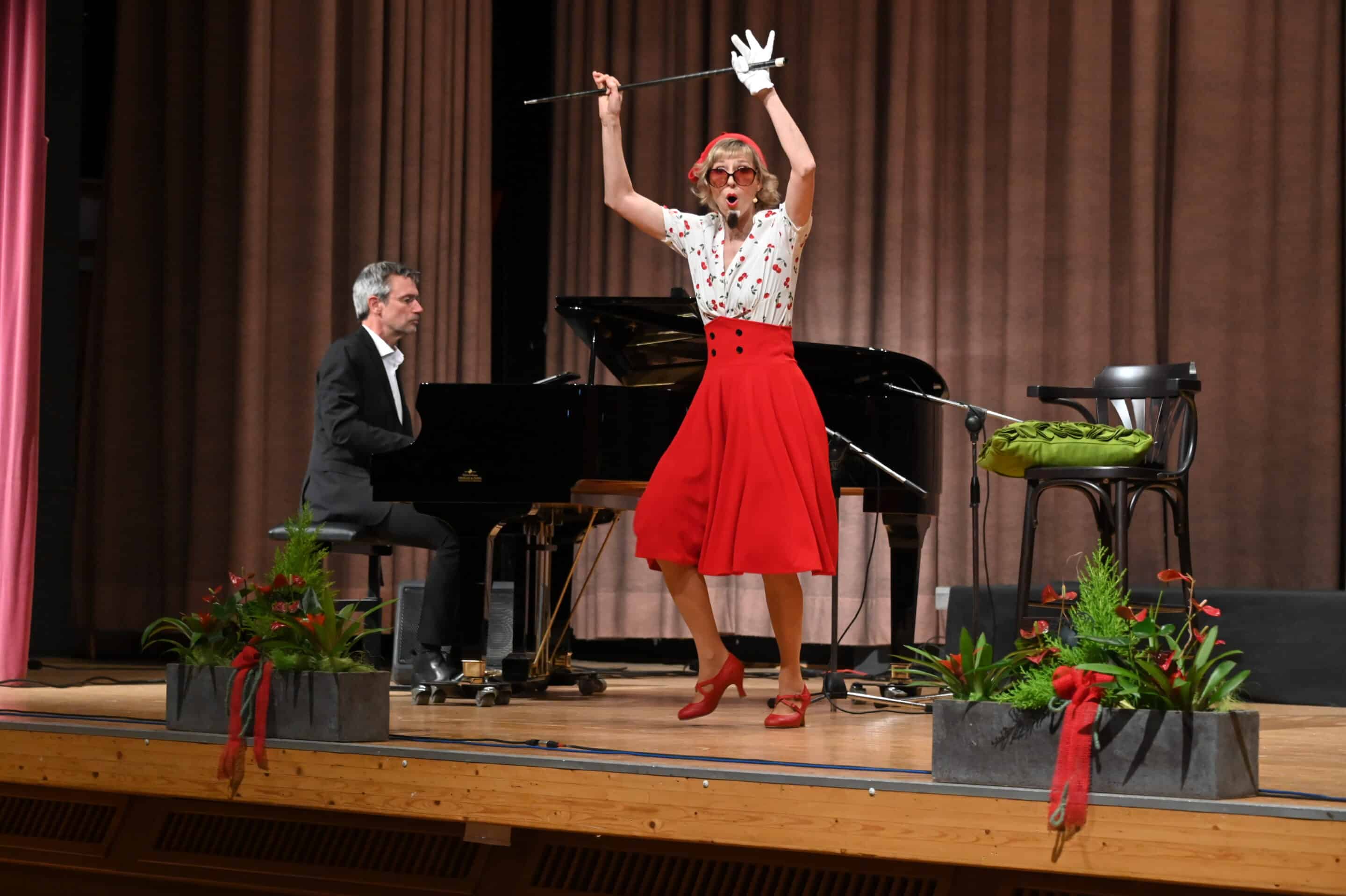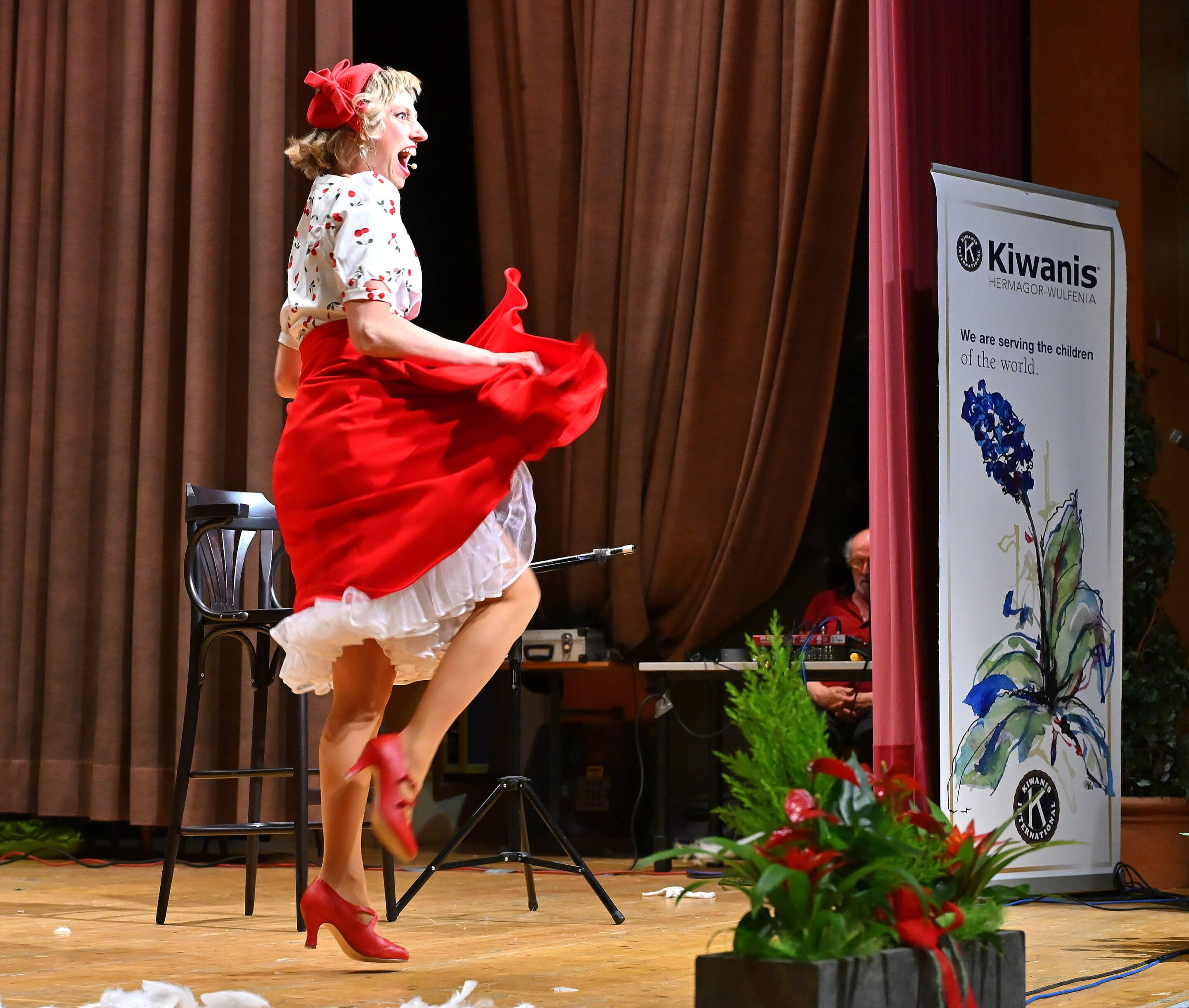 In fesselnder Profi-Manier brachte die europaweit erfolgreiche Sängerin, Schauspielerin und Tänzerin Nini Stadlmann am Samstag Abend 18. April 2026 Gesang, Schauspiel und persönliche Interpretation mit Gefühl und feinstem Witz auf die Bühne; am Flügel großartig begleitet von Carsten Gerlitz. Nini ist seit vielen Jahren an renommierten Theatern Österreichs und Deutschlands engagiert, hat Gailtaler Wurzeln und lebt inzwischen in Radnig. Vor diesem Hintergrund und der Tatsache, dass sie Clubschwester der Kiwanis Damen Hermagor-Wulfenia ist, sind in Zukunft erfreulicherweise auch regelmäßige Gastspiele in ihrer „Heimat“ zu erwarten. Mit Lebenspartner Sascha Rotermund, der als Schauspieler, Synchronsprecher, Hörspielsprecher und Musiker sehr vielseitig tätig ist, gibt es innerhalb der Familie viel gegenseitiges Verständnis für alle beruflichen Herausforderungen; frei nach dem bewährten Lebensmotto „alles kann, aber nix muss“.