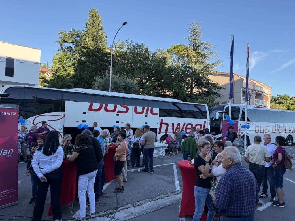 Am Samstag stand Entspannung auf dem Programm: Bei herrlichem Wetter startete eine Schifffahrt zur imposanten Krk-Brücke, gefolgt von einem Stopp auf der Insel Krk. Dort genossen die Reisenden ihr Mittagessen an Bord, bevor es gemütlich zurück nach Selce ging. Bei rund 25 Grad und Sonnenschein nutzten viele noch die Zeit für einen Spaziergang oder ein Bad im Meer oder einen Besuch im Wellnessbereich des Hotels.