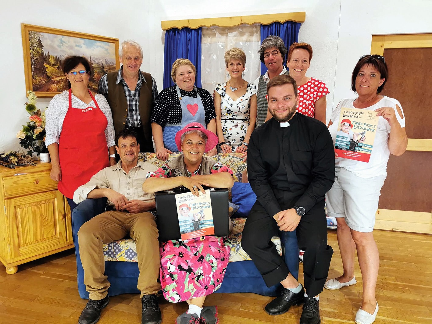 Zwischen Mitte Juli und Ende September absolviert die Gruppe fünf Aufführungen. Geprobt wird von April bis Juli, wobei die Probenarbeit für die Laienspieler eine Herausforderung ist, sie opfern zum Textlernen auch ihre Freizeit. Der Spass an den Proben entschädigt aber den Aufwand. „Nachwuchsprobleme hat das Ensemble keine“, freut sich die Spielleiterin: „Im Gegenteil, ich muss oft selektieren, wer ein Jahr pausieren muss. Lediglich bei der Rolle der „jungen Mädels“ haben wir oft einen Engpass, aber dank Maske werden unsere Damen einfach „verjüngt“. Damit die Theateraufführungen von Erfolg gekrönt sind, braucht es auch helfende Hände hinter der Bühne. Auch dafür steht jeder der 20-köpfigen Gruppe für Technik, Maske, Soufleusse, Ausschank oder Reinigung im Einsatz. In der spiel- und probefreien Zeit treffen sich die Vereinsmitglieder immer wieder zu Ausflügen und gemeinsamen Aktivitäten. „Bei uns geht es immer lustig zu“ ist Heidi Wastian überzeugt und freut sich, dass die Chemie in der Schauspiel-Familie einfach passt.