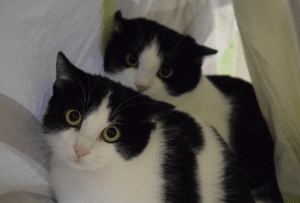 Kimba und Lui, zwei schwarz-weiße Geschwister (ca. 8 Monate), sind noch etwas schüchtern, zeigen aber schon jetzt ihre Neugier und Spielfreude. Die beiden hängen sehr aneinander und werden nur gemeinsam vermittelt. Ein katzenerfahrenes Zuhause mit Ruhe und Sicherheit lässt sie richtig aufblühen.