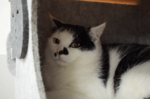 Der junge Kater Joschka, weiß-schwarz und etwa 2025 geboren, ist noch sehr scheu und lässt sich nicht anfassen. Mit anderen Katzen versteht er sich gut, weshalb eine freundliche Zweitkatze ideal wäre. Ein Zuhause mit Freigang würde Joschka den nötigen Freiraum geben, um langsam Vertrauen zu fassen.