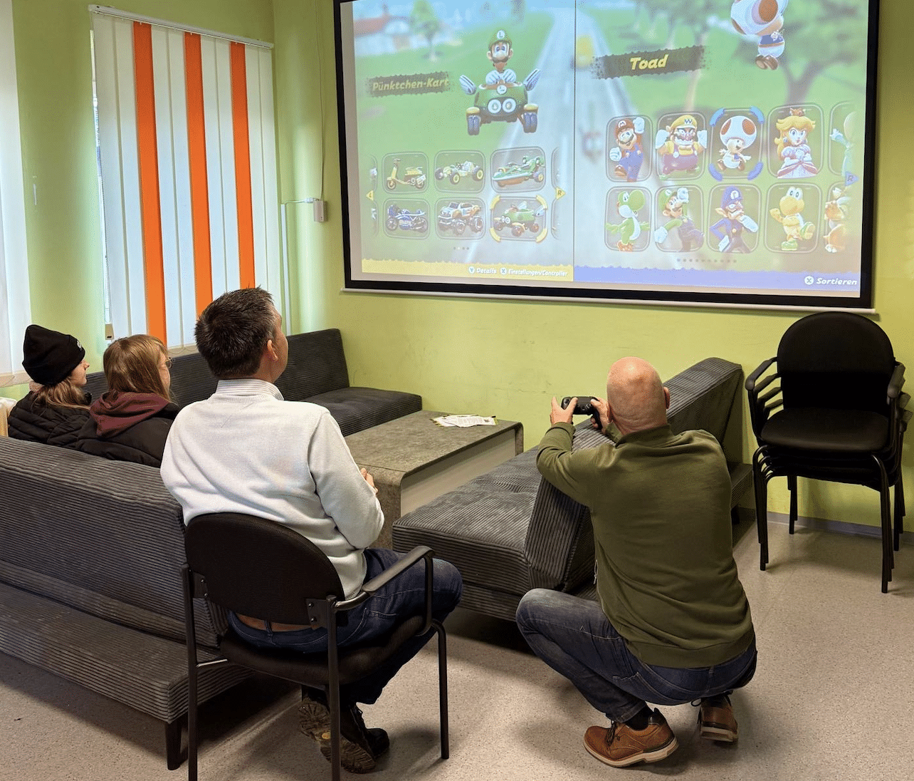 Staudacher übergab zahlreiche neue Möbelstücke, darunter drei Sofas mit Couchtisch, einen Ess- und Basteltisch samt passenden Stühlen. Für Unterhaltung ist nun ebenfalls bestens gesorgt: Besonders beliebt ist der lange gewünschte Airhockeytisch, der sofort rege genutzt wird. Auch für digitale Unterhaltung wurde gesorgt: Nintendo Switch und Playstation 5 inklusive Virtual Reality-Headset erweitern das Angebot, während klassische Gesellschaftsspiele wie Uno und Dobble weiterhin für Spaß sorgen. Zudem bereichern nun ein Tischtennistisch, Fußbälle und Federbälle das Inventar des Jugendservice.