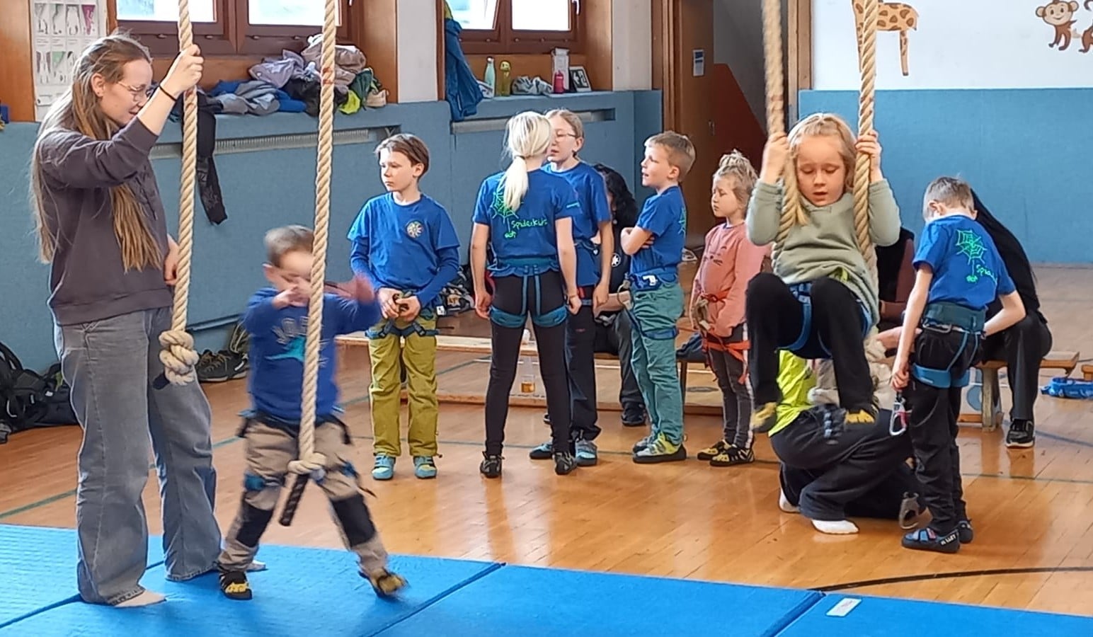 Alle 40 Kinder hatten die Möglichkeit, per Flying Fox quer durch die Halle zu sausen, und Riesenschaukel sowie Kletterseile sorgten ebenfalls für Begeisterung.Die Spiderkids und viele andere, die es noch werden wollen, zeigten jedenfalls ihr Können und alle freuen sich auf ein Wiedersehen im Herbst!