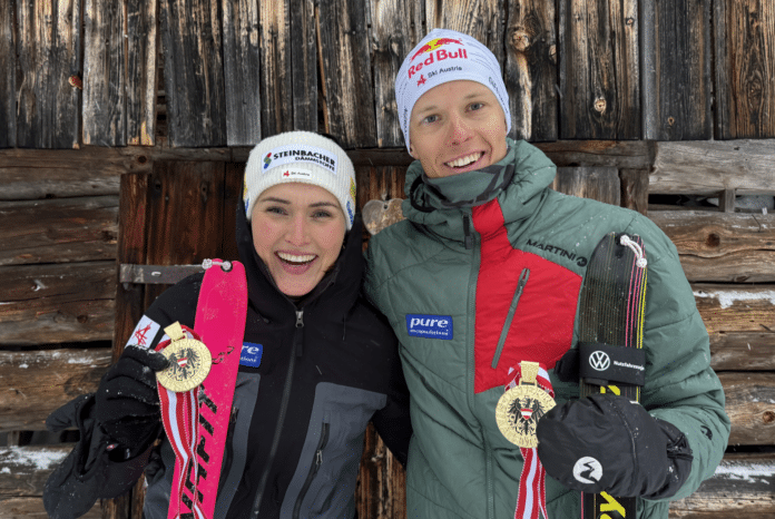 Am gestrigen Dienstag, den 30.12.2025 trugen die Skibergsteiger – nach 2022 – die Österreichischen Vertical-Staatsmeisterschaften erneut am Galsterberg in Pruggern (Steiermark) aus. Knapp 100 Teilnehmer nahmen die 3,6 Kilometer und 670 Höhenmeter auf der, vom Skiclub Gröbming und den Bergbahnen Galsterberg, bestens präparierten Route in Angriff. Mit der Bestzeit von 25:21 Minuten sicherte sich Ski Austria-Läufer Paul Verbnjak den Sieg und den Staatsmeistertitel im Vertical. Damit verwies der Kärntner seinen Teamkollegen und Vorjahressieger Christof Hochenwarter auf den zweiten Platz. Nur wenige Sekunden dahinter holte sich der Salzburger Hannes Lohfeyer den 3. Rang und komplettierte damit das Ski Austria Podium. Auch die Ränge 4 bis 7 lagen mit Nils Oberauer, Kevin Hinterberger, Silvano Wolf und Julian Tritscher in ÖSV-Hand. Routinier Daniel Zugg belegte Rang 10. Die beiden steirischen Nachwuchsläufer Kilian Rettensteiner und Elias Peer kamen als 10. bzw. 11. ins Ziel und holten sich damit ÖM-Platz 1 und 2 in der U20.