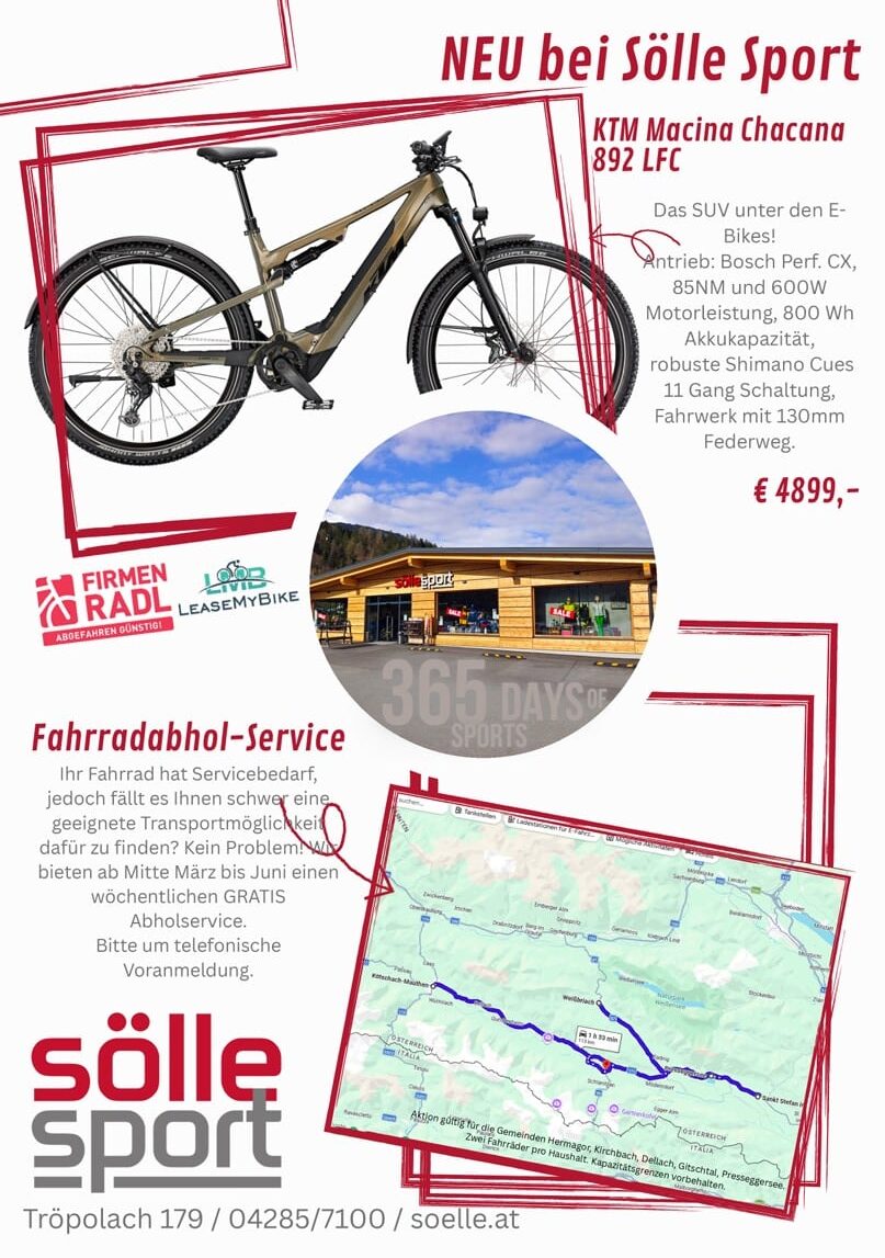 Mit fachkundiger Beratung, breitem Sortiment, Werkstattservice, Vermietung und innovativen Angeboten wie dem kostenlosen Fahrrad-Abholservice zeigt Sölle Sport, wie moderner Rad- und Servicebetrieb funktioniert. Und mit Premium-Modellen wie dem KTM Macina Chacana 892 LFC setzt das Team ein klares Statement für Qualität, Leistung und Fahrfreude in jeder Saison.