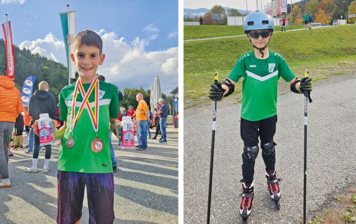 Genau diese vielen Achomitzer Sportangebote faszinieren und verzaubern Raffael Prugger und Edin Egger bei ihren Trainingseinheiten und Weitenjagden auf den verschiedensten Schanzentischen im Alpen-Adria Raum nach wie vor. „Ich bin durch den Goldi Cup zum „Skihupfen“ gekommen. Das Sprungfieber hat mich sofort gepackt. Jetzt trainiere ich daraufhin, vielleicht auch einmal so abheben zu können, wie mein Idol Daniel Tschofenig“, sagt der zehnjährige Obermöschacher. Seinen weitesten Satz landete Edin bei 14,5 Metern, als er auf der 15-Meterschanze so richtig ins Fliegen kam. Wie auch vergangenen Feber, als er beim NK-Landescup als Zweiter aufs Podest lief und sprang. Hingegen schon etwas weiter gehen die Sprünge des elfjährige Raffael. Der Mauthner liebt alle Varianten von Raclette-Rezepturen und geht beim technischen Legobauen mit derselben Präzision vor wie am Schanzentisch. „Bisher war mein weitester Satz 28 Meter, vom 30er Bakken. In dieser Saison möchte ich diese Weite noch verbessern, wie auch meine Chance, auf einen möglichen NK-Landescupsieg in der Klasse Kinder II“.