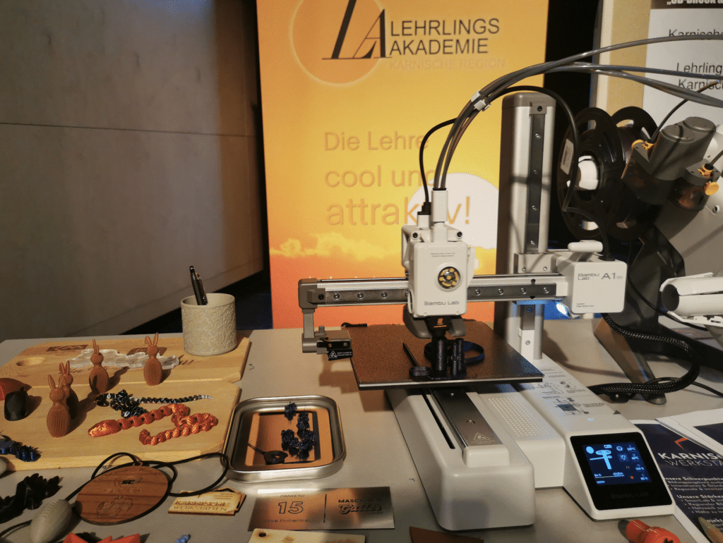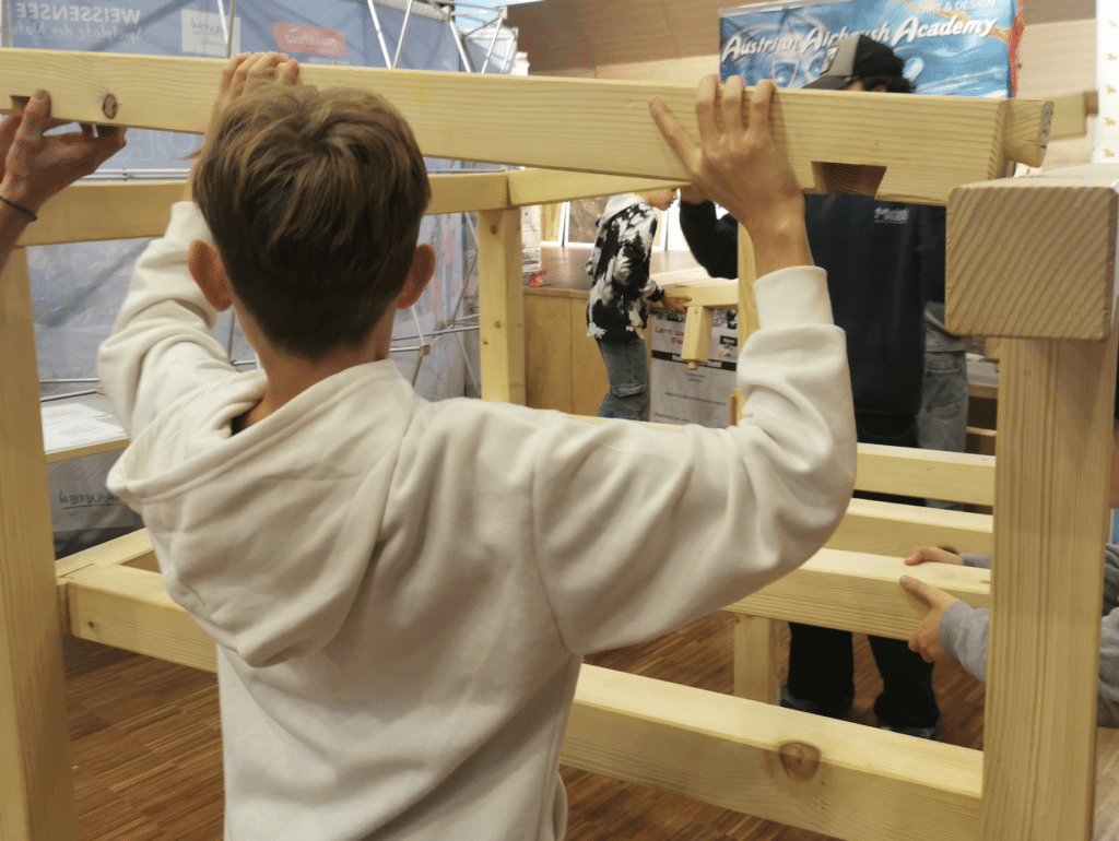 Die Messe stand sprichwörtlich Kopf – erstmals gab es einen Schüler:innen-Ausstellungstisch! Jugendliche durften ein eigenes Werkstück zu ihrem Wunschberuf oder zum Thema „Fähigkeiten & Interessen“ präsentieren. Das Besondere: Die Stücke konnten auch direkt an den passenden Stationen vorgestellt werden – zum Beispiel ein Holzwerkstück bei der Tischlerei-Station.