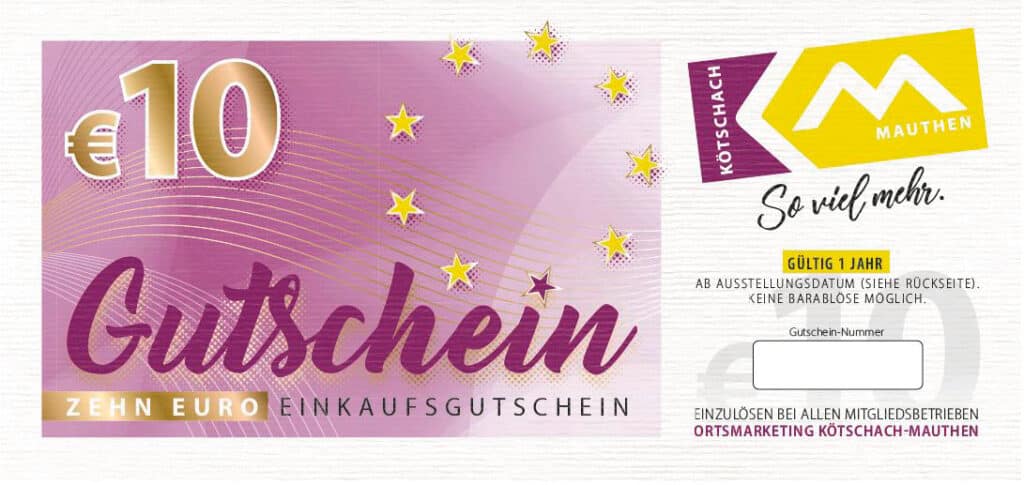 Ein Fixstern in der Weihnachtszeit ist die Aktion „So viel mehr Weihnachtsglück”. Bei Einkäufen oder beim Kauf von „So viel mehr“-Einkaufsgutscheinen zwischen 28. November und 24. Dezember erhalten Sie in mehr als 20 Geschäften und Betrieben einen Eintrag in Ihre weihnachtliche Stempelkarte. Mit jeder vollen Stempelkarte haben Sie die Chance, einen der vielen Sachpreise im Wert von à mindestens 150,- € zu gewinnen. Mit dem Einkauf vor Ort unterstützen Sie ein lebenswertes Kötschach-Mauthen und die Betriebe vor Ort.