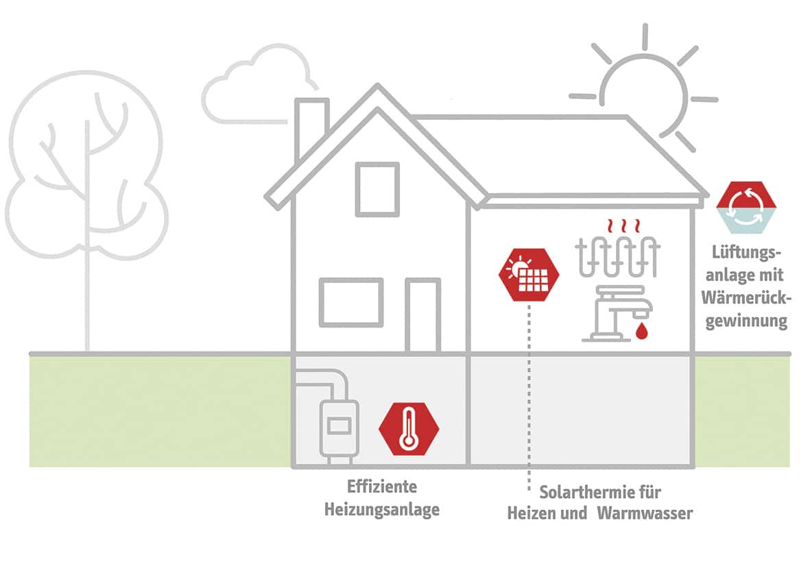 - Anschluss an Nah- oder Fernwärme: bis zu EUR 6.500,-